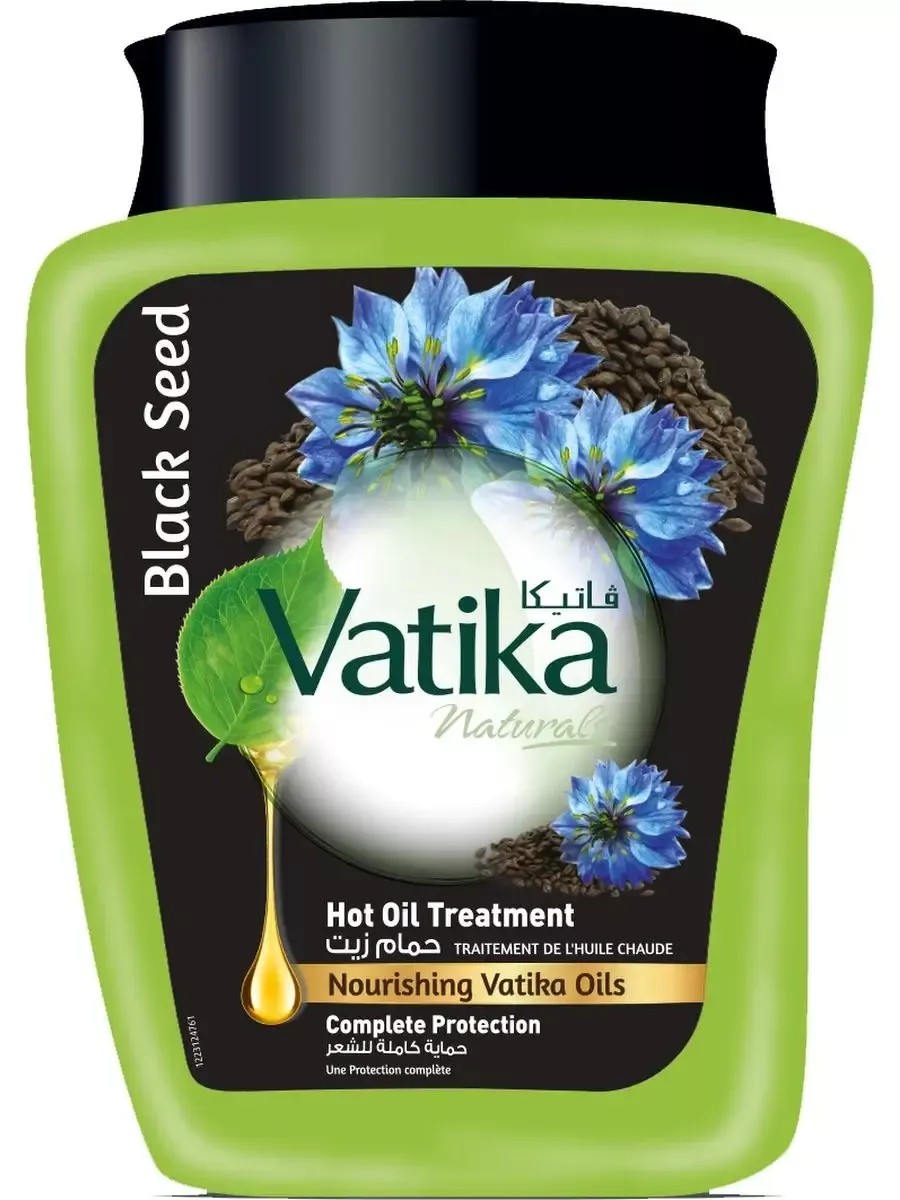 The Vatika Black Seed Mask promotes hair growth, prevents hair loss, and restores and enhances the color of natural and colored hair. Thanks to black cumin, the "Strength and Shine" mask improves hair growth, reduces hair loss, prevents dandruff, and enhances natural hair color, adding natural shine and softness. It provides comprehensive protection and restoration for all hair types. This restorative hair mask with black cumin seed extract gently nourishes the scalp and hair, normalizes sebaceous gland function, and restores hair structure. Hair becomes strong, thick, and elastic. Black cumin seeds have long been used in Ayurveda. Black cumin has the following healing properties: Prevents inflammation and regenerates inflamed areas of the scalp. Softens, moisturizes, tones, and prevents flaking. Gives hair a healthy shine and protects from UV rays. Active ingredients: Black cumin is rich in calcium, iron, phosphate, phosphorus, carbohydrates, as well as vitamins E and B, alpha-linolenic acid, and other acids. It tones the scalp and strengthens the roots, stimulating hair growth and preventing hair loss. Black cumin also reduces inflammation and promotes rapid healing, eliminates scalp flaking, and protects against UV rays. Directions: After washing, apply a generous amount of the mask to wet hair, distribute evenly throughout the lengths, massage gently, and wrap hair in a hot towel. Leave on for 15 minutes, then rinse with warm water without shampoo. Ingredients: Aqua, Cetearyl Alcohol, Myristyl Alcohol, Cetrimonium Chloride, Propylene Glycol, Nigella Sativa (Black Seed) Extract, Lawsonia Inermis (Henna) Leaf Extract, Cyclopentasiloxane, Phenoxyethanol, Parfum, Citric Acid, Glycerin, Sodium Benzoate, Potassium Sorbate, Methylparaben, Ethylparaben, Propylparaben, Butylparaben, CI 19140, CI 42090, CI 17200. Country of Origin: UAE.