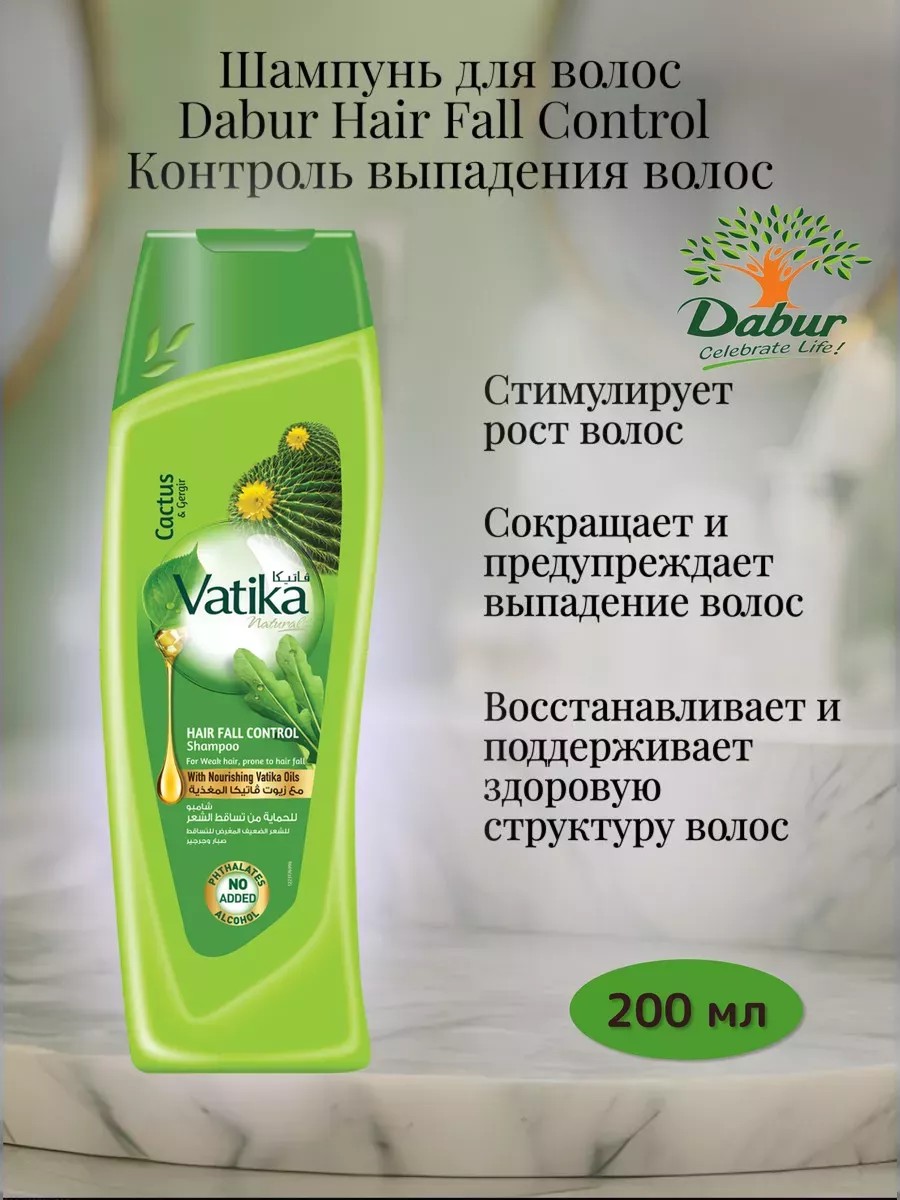 Dabur Vatika шампунь из Индии, который помогает бороться с выпадением волос и способствует росту. Подходит для любых типов волос, поскольку он прекрасно очищает кожу головы и заботится о корнях. Ароматизированный растительными экстрактами аюрведический шампунь на основе комплекса масла Усьмы, экстракт Кактуса и Чеснока - отличное средство для укрепления волос. При регулярном использовании Ваши волосы станут сильными и блестящими, приобретут густоту и объем, будут выглядеть потрясающе. Средство питает и укрепляет волосяные фолликулы, возвращает локонам естественное сияние.