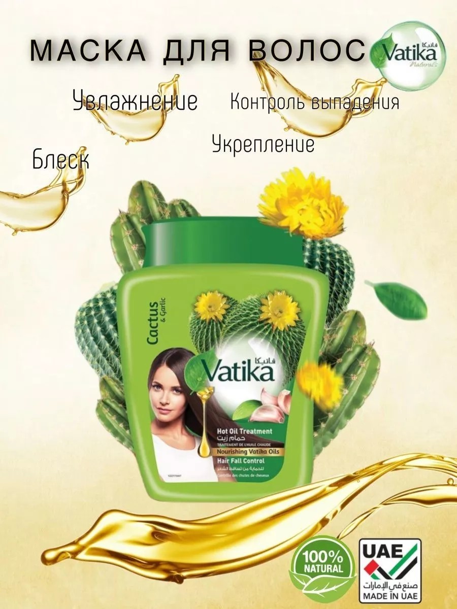 Маска для волос "Кактус и чеснок" Dabur Vatika Naturals Hot Oil Treatment Hair Fall Control эффективное восстанавливающее средство для ломких, слабых волос, склонных к выпадению. Регулярное применение маски помогает укрепить волосяные луковицы, тонизирует их, стимулирует рост волос и питает волосы.