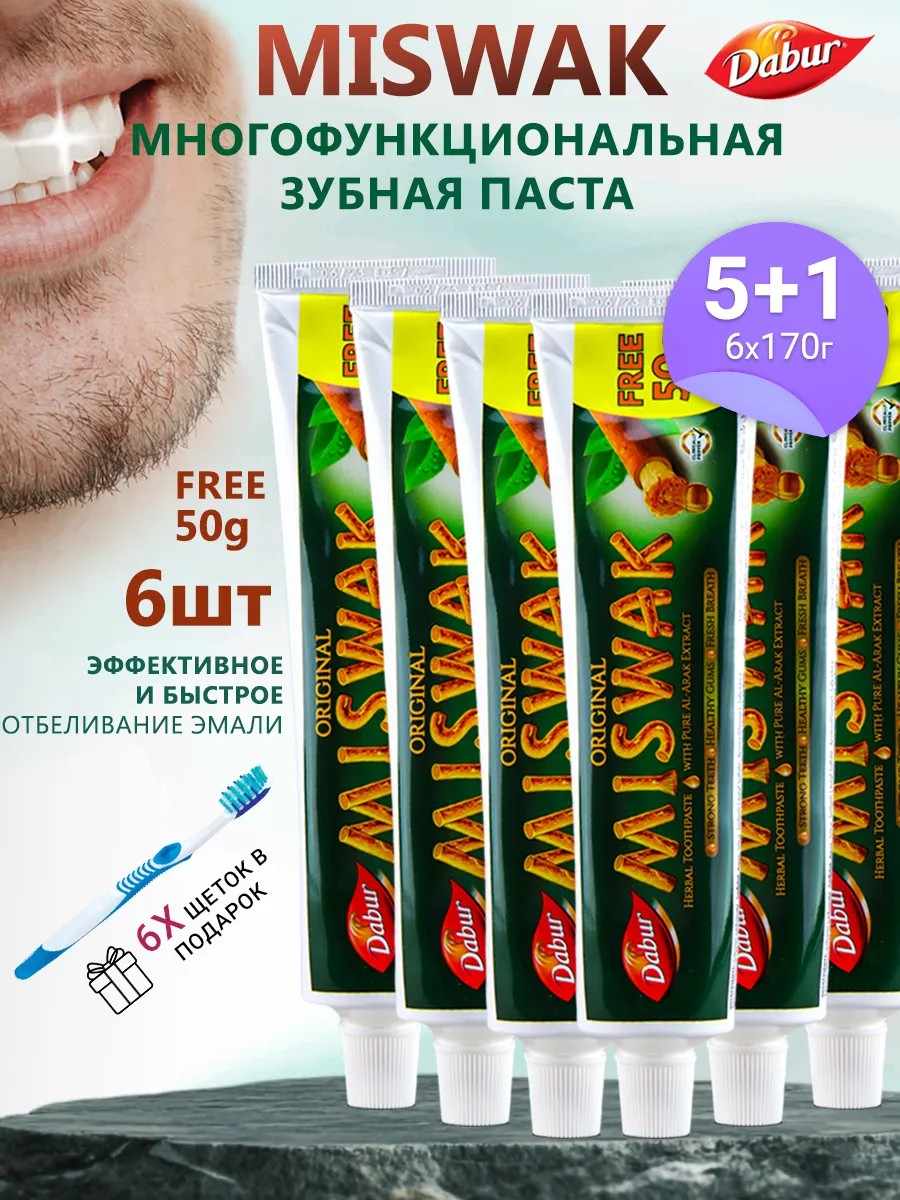 | Полное наименование товара | Зубная паста Miswak 170 гр отбеливающая 6 штук, дабур |