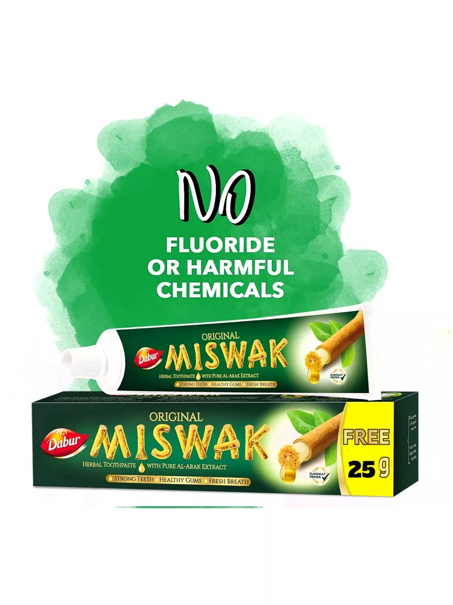 The well-known Miswak toothpaste Dabur is a toothpaste based on a pure component of the Miswak tree, toothbrushes from which have been used in the East for centuries.