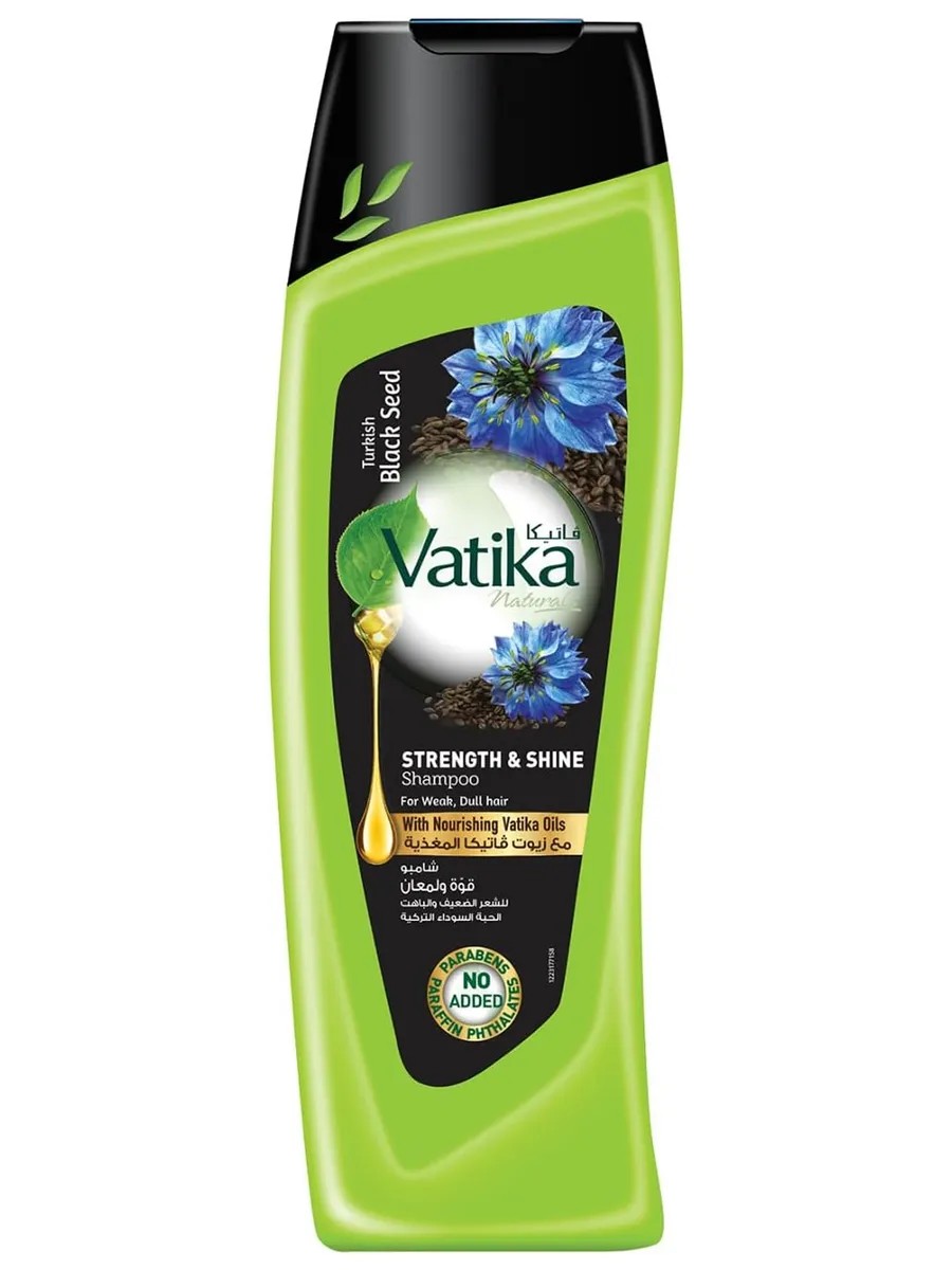 Шампунь Dabur Vatika сила и блеск с Черным Тмином (Turkish Black Seed), 200 мл с экстрактом семян чёрного тмина придаст силы ослабленным волосам, вернёт им здоровый и сияющий вид. Шампунь Dabur Vatika с экстрактом из семян чёрного тмина подпитывает кожу головы, восстанавливает повреждённую структуру волоса, оказывает стимулирующее действие на волосяные фолликулы, тем самым улучшает скорость роста волос. Шампунь Дабур Ватика вернёт Вашим волосам здоровый вид и натуральный блеск. Масло Тмина стимулирует процессы в луковицах волос, предотвращает выпадение волос, ускоряет рост. Пряди становятся мягкими, послушными и блестящими. Чёрный тмин содержит: более 100 активных веществ, ненасыщенные жирные кислоты: омега 9 и омега 6, витаминный комплекс А, Е, D и группы В, комплекс микроэлементов, включая цинк, фосфор, марганец, Фитостеролы – препятствуют выпадению волос. Применение: Нанесите на мокрые волосы немного шампуня (один-два грамма) и лёгкими движениями массируйте кожу головы в течение трёх минут, смойте пену тёплой проточной водой, если потребуется повторите процедуру ещё раз.