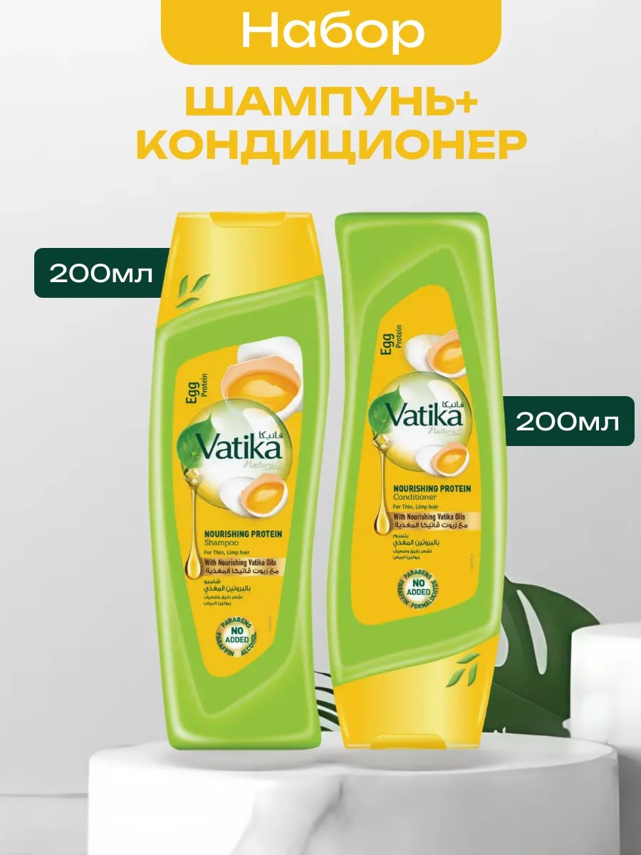Набор для волос Vatika «Яичный протеин» — это уникальное сочетание шампуня и кондиционера, разработанных для того, чтобы сделать ваши волосы сияющими и здоровыми.