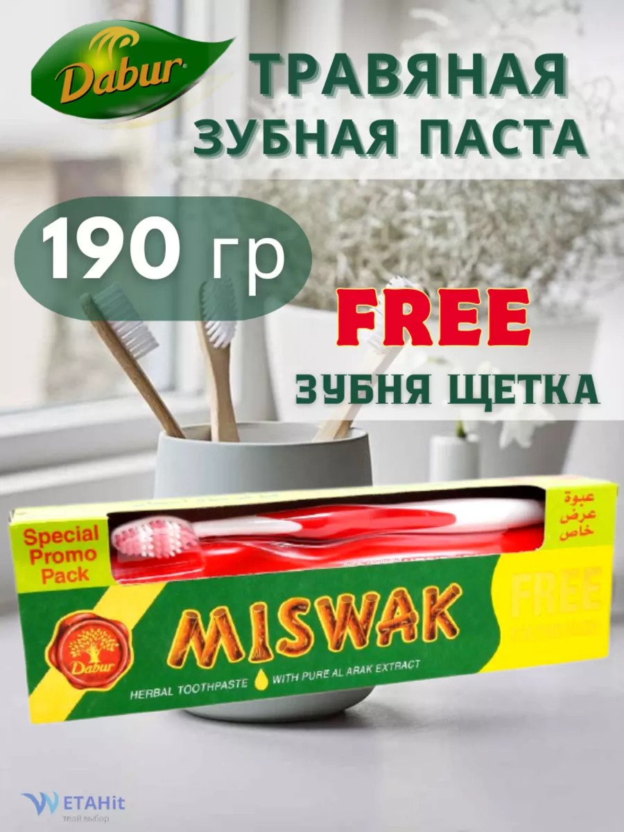 Dabur Зубная паста Мишвак Травяная + щетка, 190 г