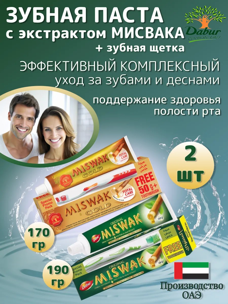 Dabur Зубная паста Мисвак Herbal 190 гр + Gold 170 гр.