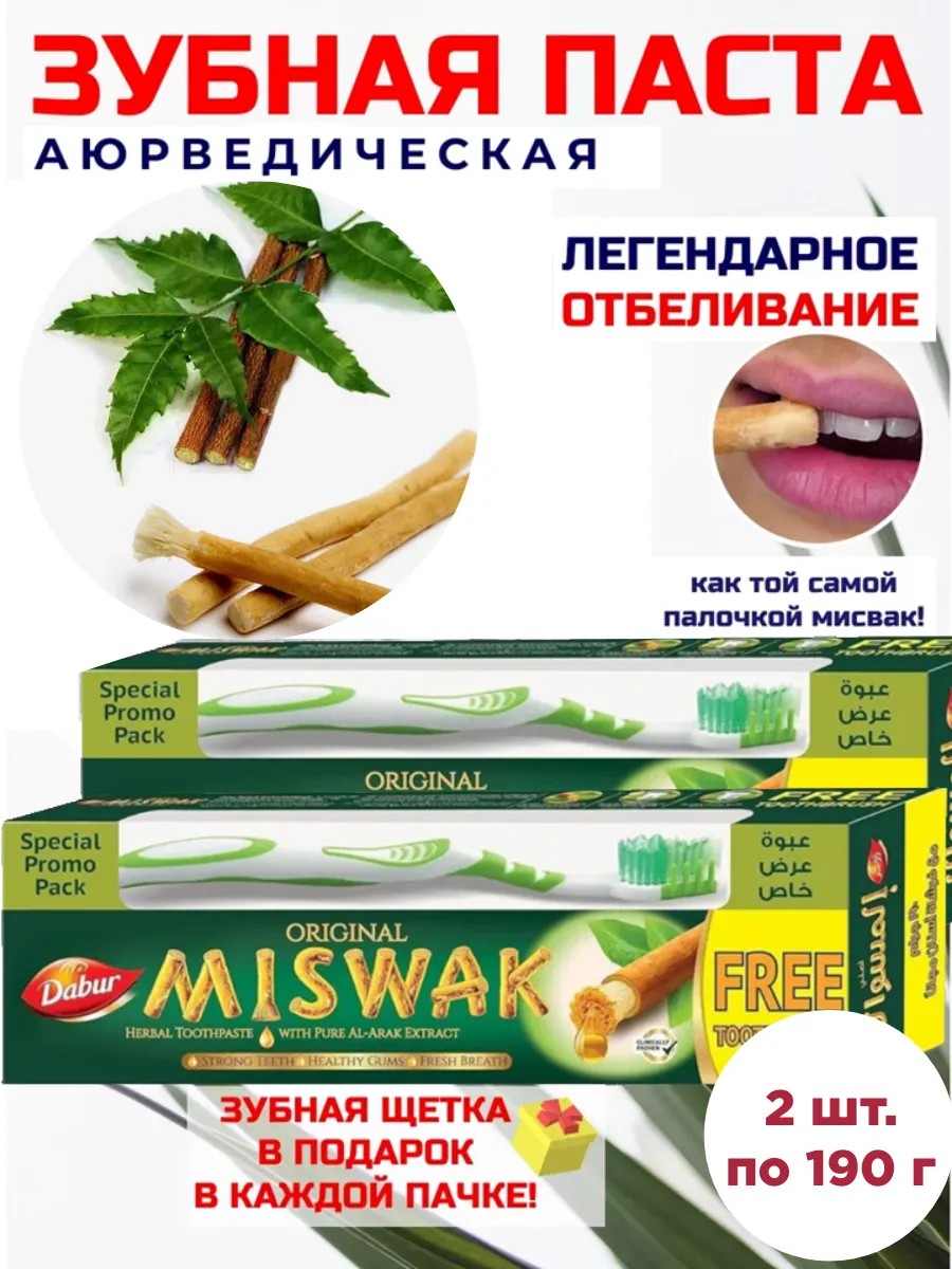 Dabur Зубная паста Мисвак Оригинал с щеткой 2 шт. по 190г
