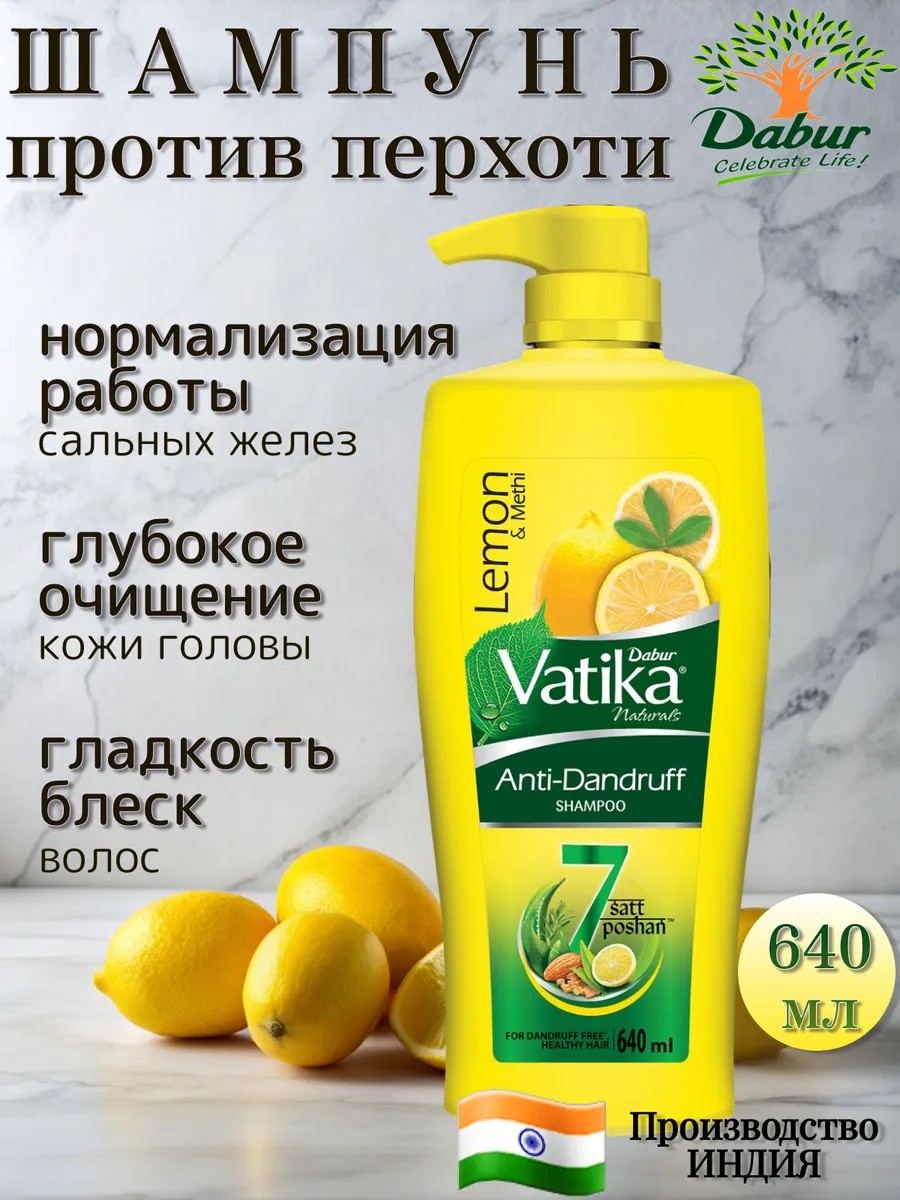 Шампунь Dabur VATIKA Naturals от перхоти содержит комплекс натуральных ингредиентов, которые помогают добиться значительных улучшений состояния волос и кожи головы спустя некоторое время после начала его использования. Наилучший результат достигается при регулярном использовании. Основными компонентами шампуня являются экстракты трав. Индийский шампунь Ватика содержит силу лимона и мети, которые помогают обеспечить здоровые волосы без перхоти. Лимон содержит витамин С, который помогает сдерживать выпадение волос и уменьшает перхоть. Мети или пажитник имеют высокое содержание белка и никотиновой кислоты, которые полезны при проблемах выпадения волос и перхоти. Совершенство 7 натуральных ингредиентов: мети, лимона, хны, миндаля, масла чайного дерева, розмарина и алоэ вера контролирует перхоть и обеспечивает нежное очищение, кондиционирование и питание волос. Состав:Aqua, Sodium Laureth Sulphate, Cocamide MEA, Dimethiconol and TEA-Dodecylbenzenesulfonate, Herbal extract containing Methi (Trigonella foenum-graeceum), Henna (Lawsonia, inermis), and Almond (Prunus amygdalus), Cocoamidopropyl Betaine, Perfume, Coco Glucoside, Glycol Distearate, Ghycerine, Sodium Chloride, Aloevera (Aloe barbadensis) Extract, Neem (Azadirachta indica) Extract, Tea Tree (Melaleuca alternifolia) Oil, Lemon Citrus limon) Oil, Rosemary (Rosmarinus officinalis) Oil,Tocopheryl (vitamin E) Acetate Panthenol, Climbazole, Carbomer, Guar Hydroxypropylitrimonium Chloride, Menthol, Amodimethicone (and) Tridetech-12 (and) Cetrimonium Chloride, PEG 90M, Lactic Acid, Sodium Hydroxide, ooschozolinone, Melhylisothiozolinone, CI 19140, CI 16035