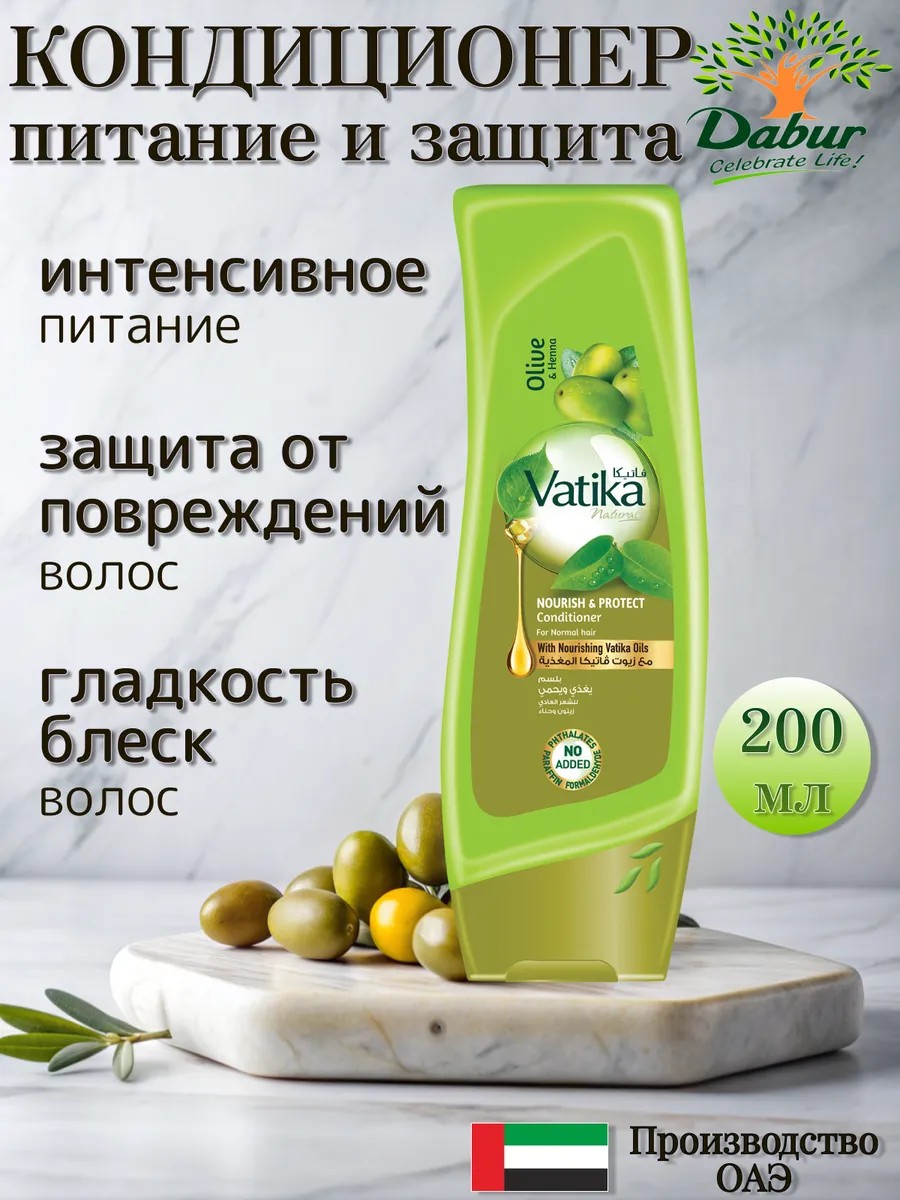 Dabur Vatika conditioner is suitable for hair in need of moisture and nourishment. The formula is ideal for normal hair. It restores and maintains a healthy hair structure. Directions: Apply a small amount of conditioner to clean, damp hair and distribute throughout the lengths. Leave on for 2-3 minutes and rinse with warm running water.