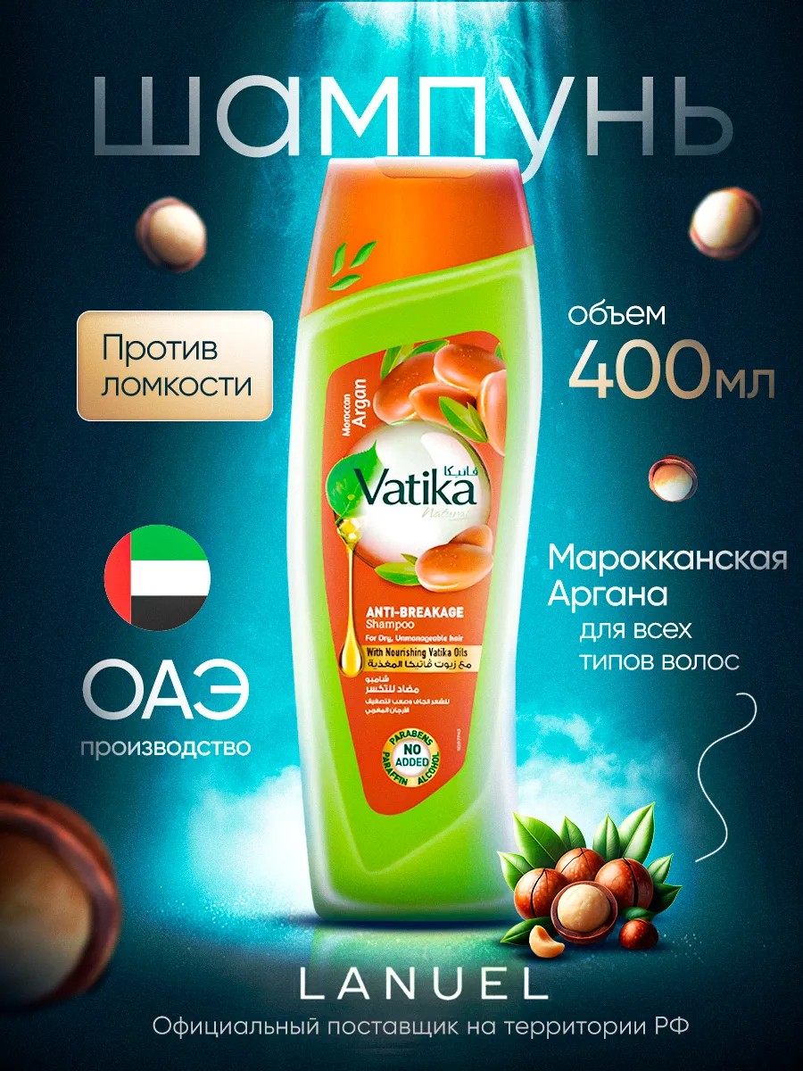 Этот профессиональный продукт – идеальное решение для ухода за вашими кудрявыми волосами. Масло аргана в составе поможет вам избавиться от сухости и перхоти, придавая вашим локонам мягкость и шелковистость, не повреждая кончики волос. Увлажняющий компонент этого шампуня сделает каждую прядь мягкой и блестящей.Этот детский продукт особенно подходит для нежных волос малышей. Он бережно очищает кудри, не вызывая слез, обеспечивая им максимальный объем без пересушивания. С индийскими традициями ухода за волосами наилучшим образом справляется аргановое масло компании Dabur Vatika.Шампунь также оказывает антивозрастное действие на женскую часть населения – он делает пряди густыми и здоровыми, улучшая структуру каждой строчки волос. Косметика Vatika создана по арабским рецептам и принципам, использованным женщинами Индии для улучшения своего облика.Натуральный состав это неизменная черта данной продукции: отсутствие силько-пенообразующих агентов (сульфатов) и силиконов делает его действительно нежным к вашим локонам. Если вы путешествуете часто – возьмите это средство с собой, чтобы сохранить объем прически, который вы так тщательно создали.Не откладывайте заботу о своих кудрявых волосах на потом – попробуйте шампунь Vatika Арган Мягкое увлажнение уже сегодня!.