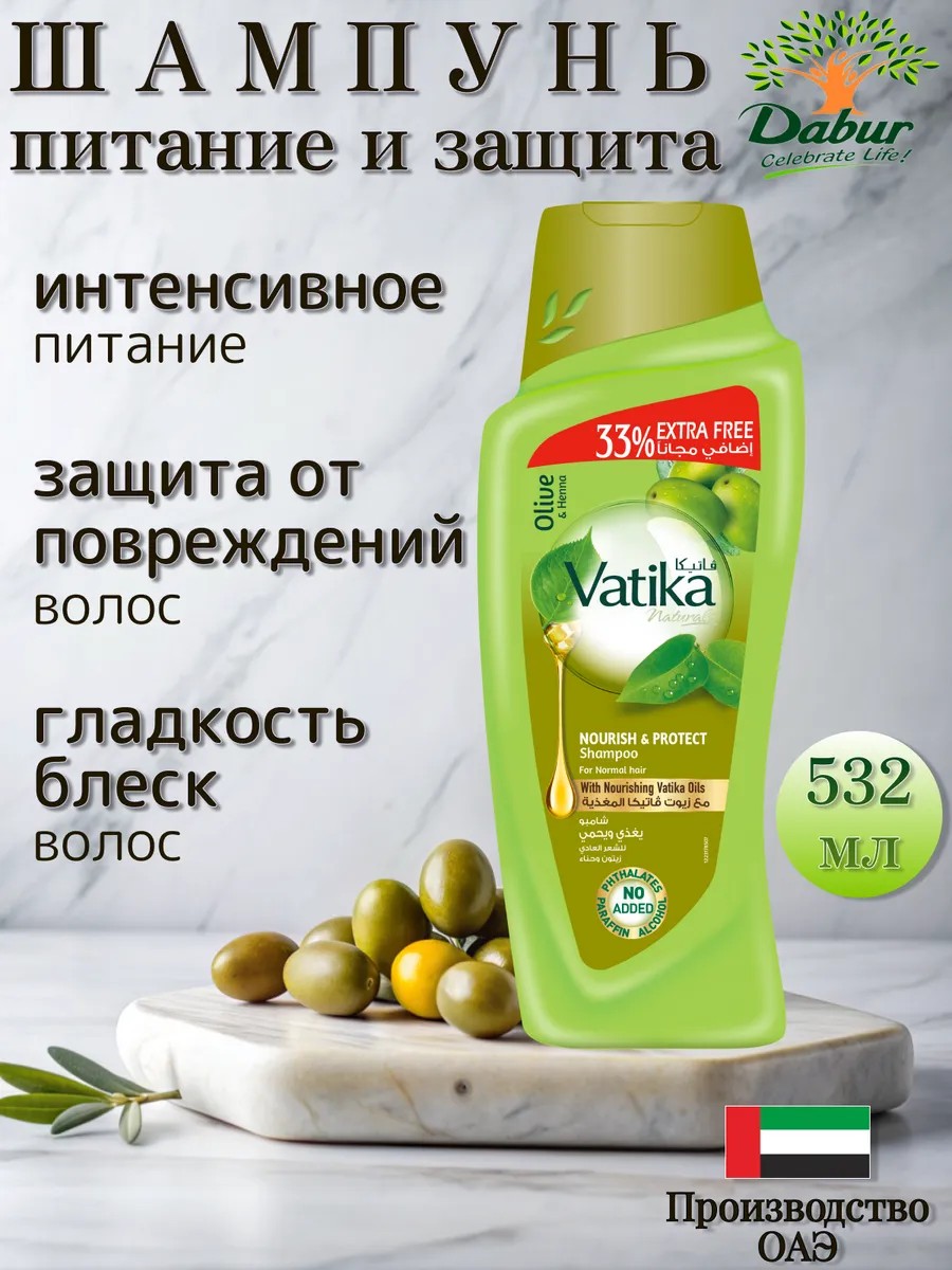 Шампунь для волос Dabur Vatika Nourish & Protect Питание и защита подходит для волос, которые нуждаются в увлажнении и питании. Формула шампуня идеально подобрана для ухода за нормальными волосами, восстанавливает и поддерживает здоровую структуру волос, волосы становятся мягкими и легко расчесываются. Активные компоненты, входящие в состав шампуня: Оливковое масло - улучшает внешний вид волос, делает волосы шелковистыми и мягкими, при регулярном использовании восстанавливает корни волос, борется с секущимися кончиками. Масло миндаля - питает и укрепляет волосы изнутри, отличное средство для лечения выпадения волос, улучшает рост волос, предотвращает зуд и сухость кожи головы и обеспечивает полноценное питание волосам, придает шелковистость и поддерживает здоровье волос. Хна - обладает сильными противогрибковыми и вяжущими свойствами, укрепляет корни волос, предотвращает появление перхоти, создает защитный слой на поверхности волоса, придает волосам объем и блеск. Алоэ вера - сохраняет естественный водный баланс, оказывает тонизирующий и заживляющий эффект на кожу головы, имеет бактерицидные, противогрибковые свойства Состав: Aqua, Sodium Laureth Sulfate, Dimethiconol, Cocamide MEA, Cocamidopropyl betaine, Glycol Destearate, Parfum, Sodium Chloride, Sodium PCA, Amodimethicone, Carbomer, Guar Hydroxypropyltrimonium chloride, Sodium Hydroxide, Panthenol, Disodium EDTA, Aloe Barbadensis (Aloevera) ext, Olea Europaea (Olive) ext, Prunus Amygdalus dulcis (Almond) ext, Lawsonia inermis (Henna) leaf ext, PEG-90M, Lactic Acid, Magnesium Nitrate, Magnesium Chloride, Methylchloroisothiazolinone, Methylisothiazolinone, Amyl Cinnamal, Butylphenyl Methylpropional, Limonene, Linalool, CI 19140, CI 42090.