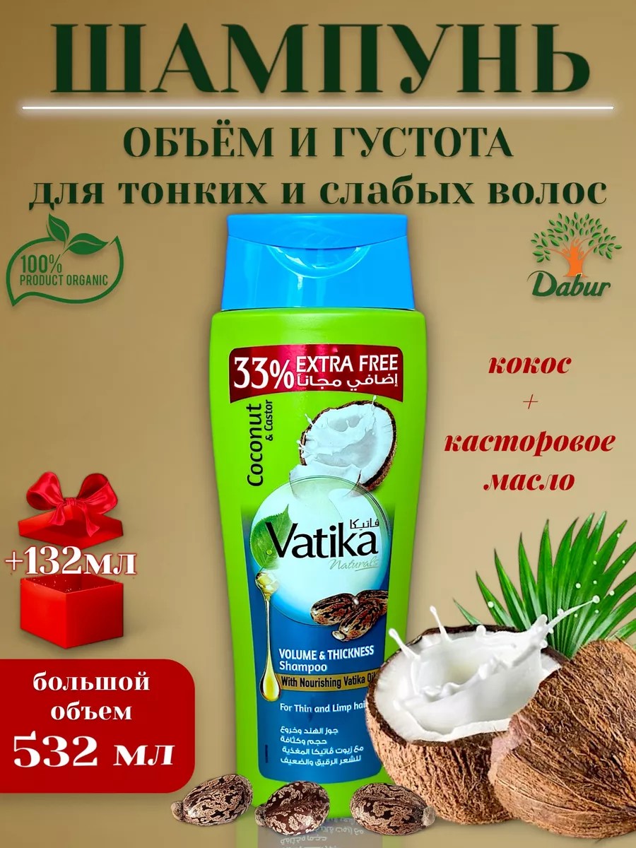 | Комплектация | Шампунь для волос Vatika увеличивающий объем женский с кокосом хной касторовым маслом 532 мл |