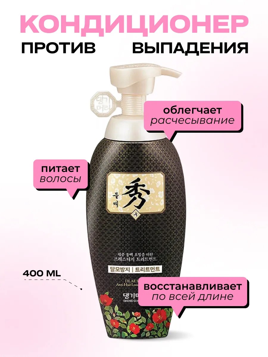 Кондиционер с маслом камелии Daeng Gi Meo Ri Dlae Soo Anti-Hair Loss Treatment предназначен для тех, кто столкнулся с проблемой выпадения волос. Рекомендуется для тех, у кого волосы тонкие и ослабленные. Регулярное применение кондиционера приводит к укреплению волос, останавливает их выпадение..Кондиционер предназначен для тех, кто столкнулся с проблемой выпадения волос. Рекомендуется для тонких и ослабленных волос.