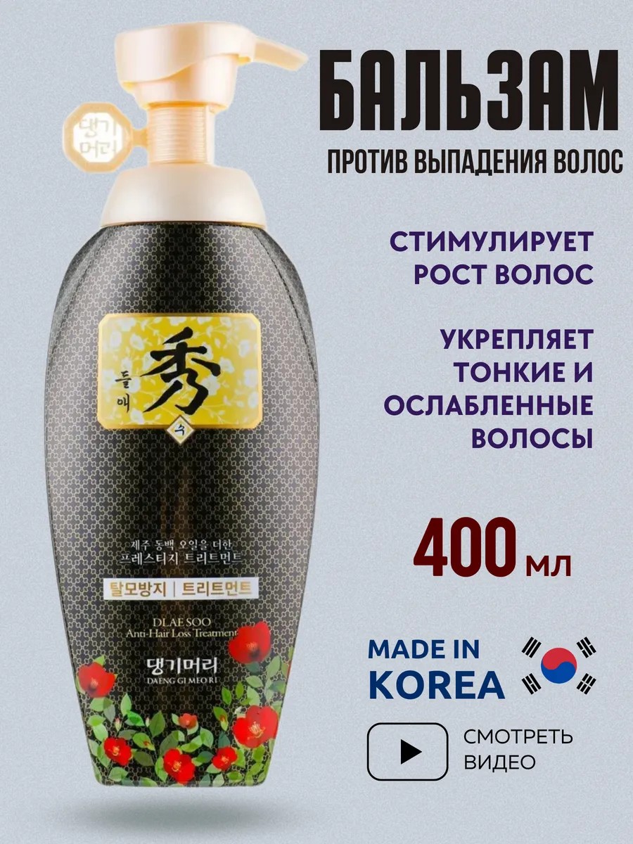 Daeng Gi Meo Ri Dlae Soo Anti-Hair Loss Treatment, a professional conditioner with camellia oil, is designed for those experiencing hair loss. It is recommended for fine and weakened, bleached, curly, and dry hair, maintaining a healthy scalp. Regular use of the conditioner strengthens and restores hair follicles. Thanks to keratin and panthenol, this nourishing mask addresses the problems associated with curly, weakened, and highlighted women's locks. Oriental herbal extracts moisturize porous and damaged men's hair, stimulating it and helping prevent breakage. A natural conditioner with a dispenser from a Korean brand will make your hair soft and manageable for easy combing and styling, while the perfumed aroma adds charm and elegance. A conditioner for growth and colored hair will add volume, shine, and elasticity. Original skin care cosmetics 400 ml.