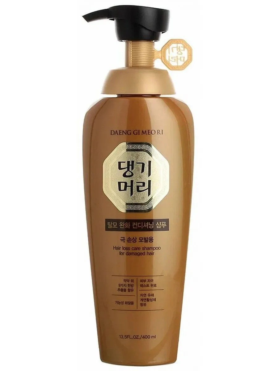 Daeng Gi Meo Ri Hair Loss Care Shampoo for Damaged Hair, 400 ml. Daeng Gi Meo Ri Hair Loss Care Shampoo for Damaged Hair actively nourishes and moisturizes, heals damaged hair structure. Effectively combats dryness and brittleness, restores shine, smoothness, and strength to hair. In the shortest possible time, it restores damaged, weakened hair and fights breakage. The shampoo contains herbs that soften brittle and overdried hair. How to use: Apply the required amount of shampoo to hair. Massage for 2-3 minutes in a circular motion, then rinse thoroughly. Repeat the procedure if necessary. Volume: 400; Ingredients: Water, Paeonia Lactiflora Extract, Rehmannia Chinensis Root Extract, Disodium Laureth Sulfosuccinate, Chrysanthemum Boreale Flower/Leaf/Stem Extract, Lauryl Glucoside, Glycyrrhiza Uralensis (Licorice) Root Extract, Polygonum Multiflorum Root Extract, Lauramidopropyl Betaine, Morus Alba Bark Extract, Houttuynia Cordata Extract, Punica Granatum Fruit Extract, Biota Orientalis Leaf Extract, Panax Ginseng Root Extract, Helianthus Annuus (Sunflower) Seed Oil, Carthamus Tinctorius (Safflower) Seed Oil, Nelumbium Speciosum Flower Extract, Coix Lacryma - Jobi Ma - yuen Seed Extract, Rose Flower Oil, Glycerin, Dipropylene Glycol, Polyquaternium - 22, Sodium Chloride, Glyceryl Caprylate, Menthol, Polyquaternium - 10, Caprylyl Glycol, Panthenol, Polyquaternium - 7, Niacinamide, Disodium EDTA, Dipotassium Glycyrrhizate, Butylene Glycol, Xanthan Gum, Caprylic / Capric Triglyceride, Fragrance, Limonene, Hexyl Cinnamal, Linalool; Expiration date: 24; Hazard class: Not hazardous; Hair type: Damaged; Effect: Damage protection; Gender: Female;