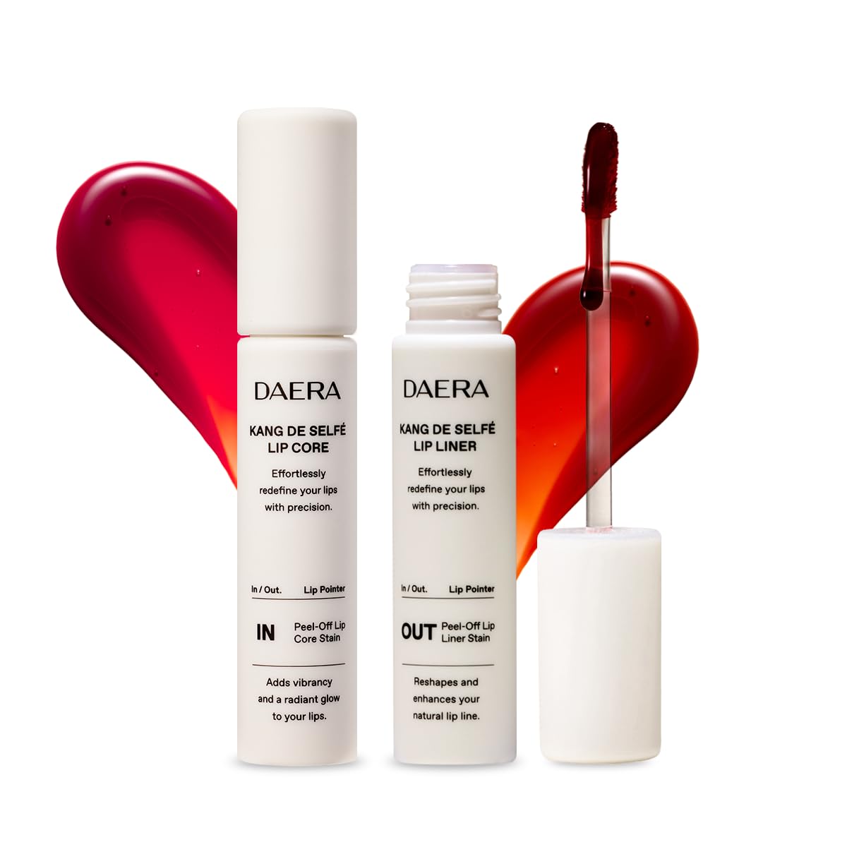DAERA Kang De Selfe Lip Peel-Off Lip Liner stain & inner tint set Korean Anti-Aging Lip Care Long-Lasting Smudge-Proof Transfer-Proof Hydrating with Peptides & Ceramides
