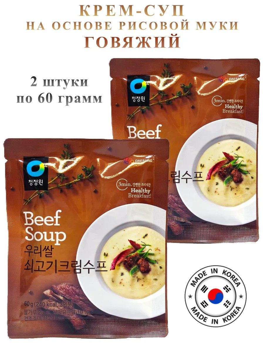 говяжий крем-суп, быстрое питание, суп без глютена, корейская еда, рисовая мука, азиатская кухня, легкий суп, сытный суп