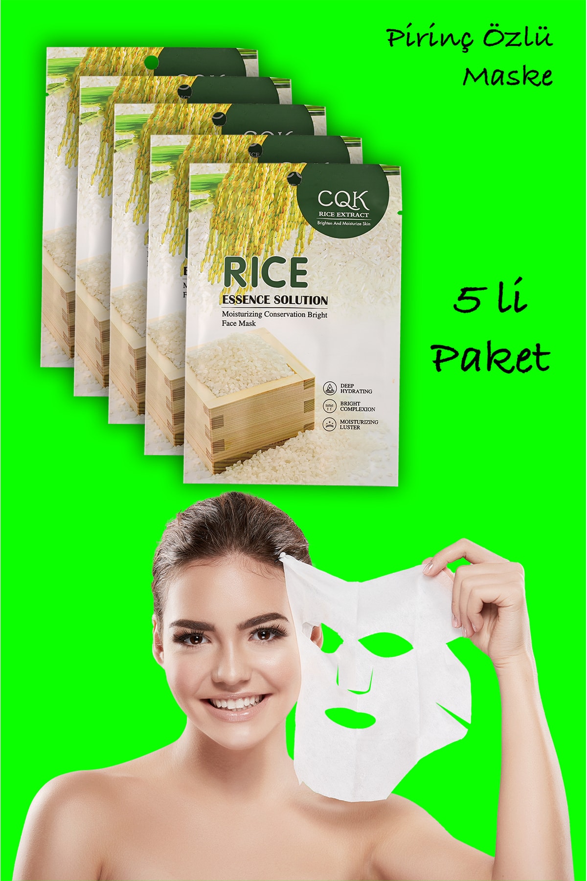 Dahaus 5 Pieces Rice Silk Protein Essence Tone Equalizing Rice Face Mask Deep Hydrating XLM0182