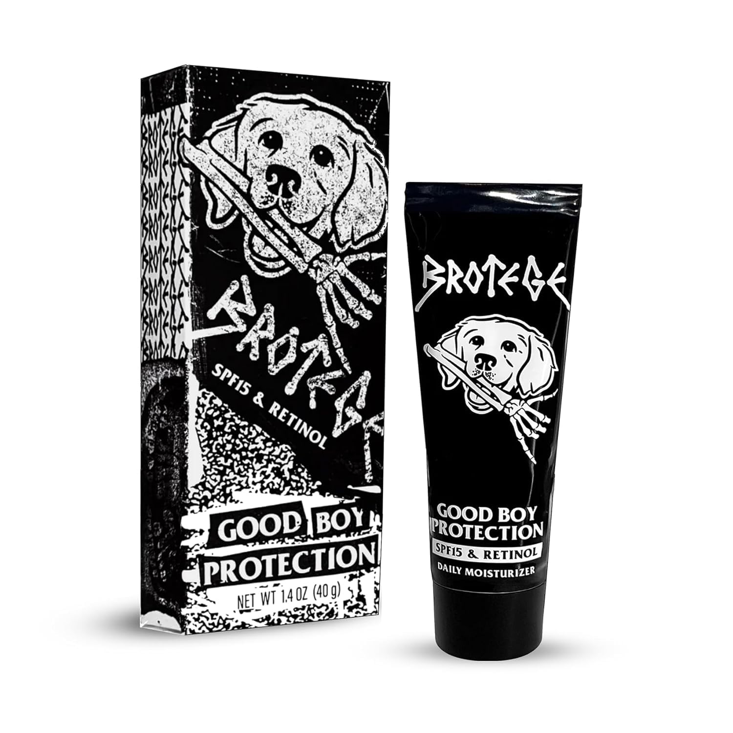 FULLY RECYCLABLE METAL TUBE: Bros love metal. Brotege is literally metal. Comes in an old school aluminum steel tube that you have to pierce with a spike at the top of the cap to open. VITAMINS MINERALS: Jam packed with vitamin e, b5, and a bunch of other goodies to keep you moisturized. After all, moisture is the essence of wetness, and wetness is the essence of beauty. FRAGRANCE FREE NON-GREASY: Save the grease cologne for the disco, Chad. RETINOL ANTI AGING: If you haven't heard of Retinol, don't worry, we're sure you'll be getting served an ad for an expensive serum soon. Brotege has Retinol included, so you can keep those crows feet at bay without breaking the bank. SPF 15: That's some Strong Protection! You need to block those nasty rays if you don't wanna end up looking like a big ol' bag of rotting beef.
