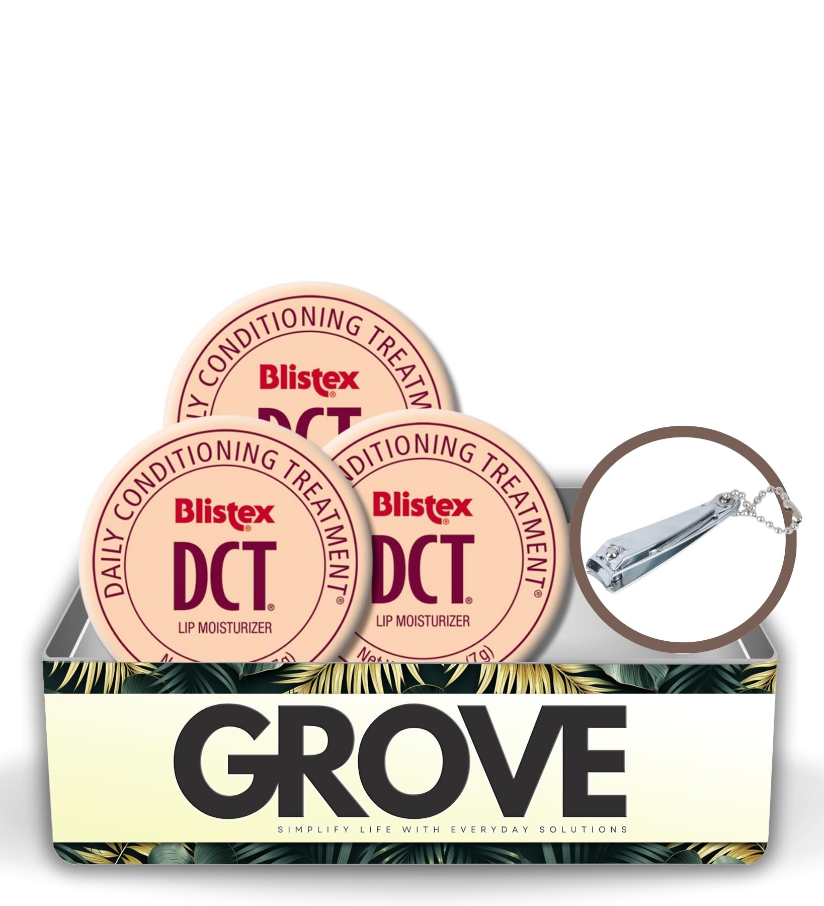 DCT Conditioning Lip Treatment Balm provides daily nourishment to soften and moisturize your lips, keeping them smooth and hydrated. This gentle, non-scented formula is perfect for replenishing moisture-starved lip cells that are exposed to harsh environmental conditions like dry air and wind. Designed to restore hydration and prevent dryness, this conditioning lip treatment helps protect against cracking and chapping, offering long-lasting moisture and care. Its lightweight formula shields your lips from the drying effects of daily exposure while keeping them soft and healthy without any added fragrances. Ideal for those with sensitive skin or scent preferences, this conditioning lip treatment is your go-to solution for keeping lips smooth, moisturized, and protected throughout the day. This bundle includes 3 jars of 0.25 oz Daily Conditioning Lip Treatment Balm and a Nail Clipper, providing a perfect combination for keeping your lips moisturized and protected, along with a tool for maintaining neat and trimmed nails.