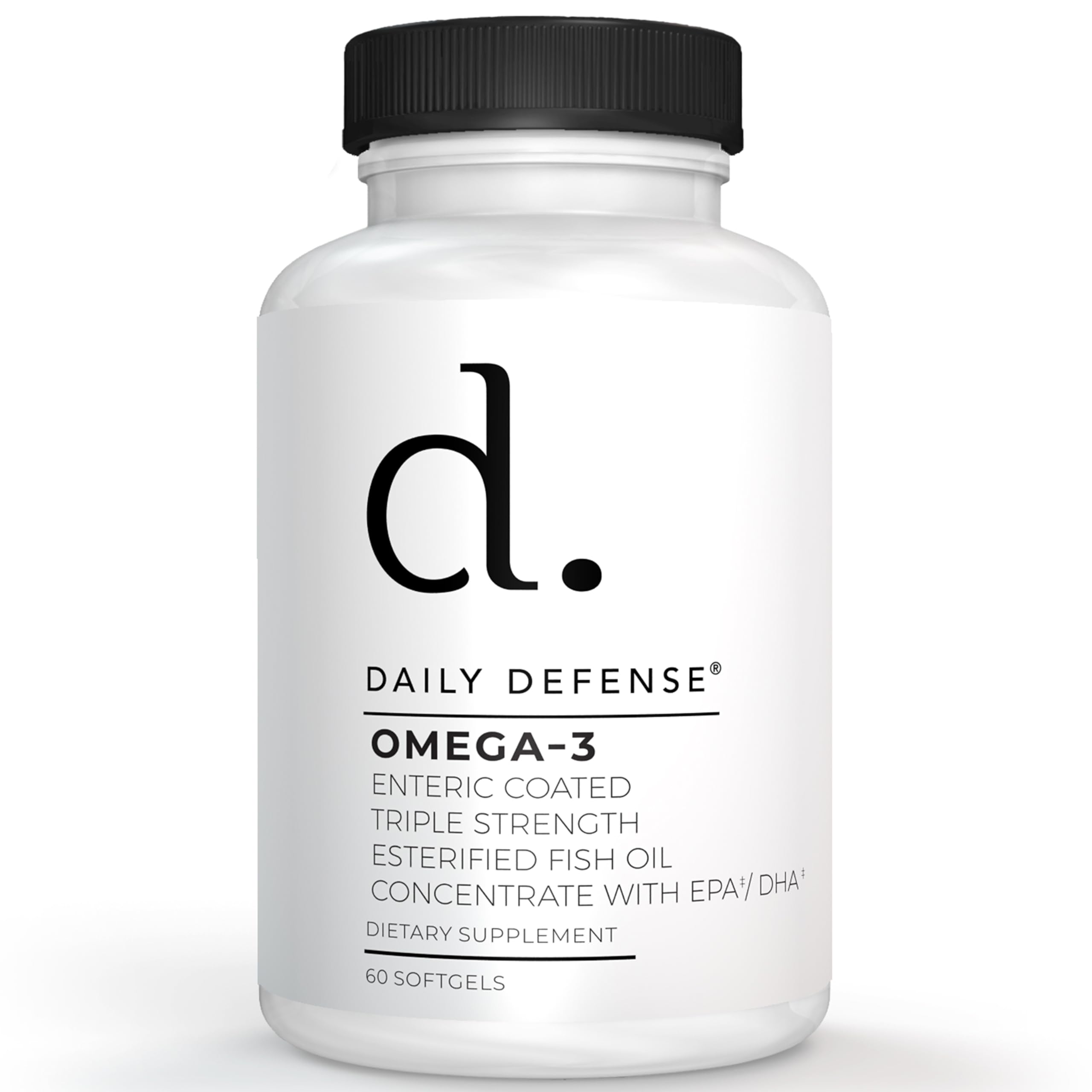 Daily Defense Omega 3 Fish Oil 1000mg Supplement - Omega 3 DHA EPA Supplement for Men & Women for Skin Nails Cognitive & Heart Support - 60 Enteric Coated Fish Oil Softgels Made in The USA