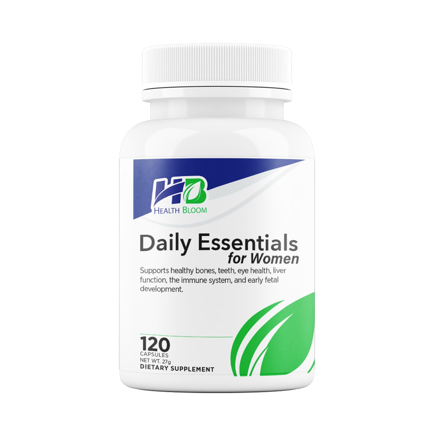 Support your daily wellness with Health Bloom Daily Essentials for Women—a scientifically balanced blend of essential vitamins and minerals formulated to complement the nutritional demands of modern, active lifestyles. Each capsule delivers key micronutrients that help address common dietary shortfalls, without the use of unnecessary additives, artificial colors, or synthetic fillers. With 120 capsules per bottle, this clean-label formula provides a two-month supply of consistent, comprehensive support for energy metabolism, immune function, and overall well-being. The smooth, easy-to-swallow capsules contain no sugar, chewables, or artificial flavoring agents, making them suitable for routine use at any time of day. ✓ Produced in a GMP-certified, ISO-compliant facility, each batch undergoes rigorous quality control to ensure safety, purity, and ingredient integrity—offering plant-based, evidence-informed nutrition you can trust.120 Capsule Bottle – Compact Long-Lasting – Designed for 60 days of use per bottle. Great value and easy to store or travel with. Comprehensive Nutrient Profile – Includes essential vitamins and minerals such as vitamin D3, B12, C, A, zinc, magnesium, folate, biotin, and more. WADA-Compliant Clean Label – Free from any substances on the WADA Prohibited List. Trusted by health-conscious users and clean athletes alike. ✓ GMP-Certified Quality – Manufactured in a GMP-compliant, ISO-certified facility with strict quality control standards. ? Gentle and Easy to Digest – Formulated to be easy on the stomach and quickly absorbed, with no aftertaste or coating. No Fillers or Artificial Additives – Each capsule is packed only with what you need—no unnecessary binders or synthetic ingredients. Simple, Capsule-Based Format – No sugar, no chewables—just straightforward supplementation. Easy to incorporate into your morning or evening routine. 120 Capsules – One Month Supply – Convenient daily format (4 capsules per day) provides consistent, reliable nutrition with each dose. Clean and Allergen-Free Formula – Contains no artificial colors, gluten, dairy, soy, preservatives, or GMOs. Suitable for most dietary lifestyles. Balanced Daily Support for Women – Formulated with essential vitamins and minerals to support nutritional needs as part of your daily wellness routine.