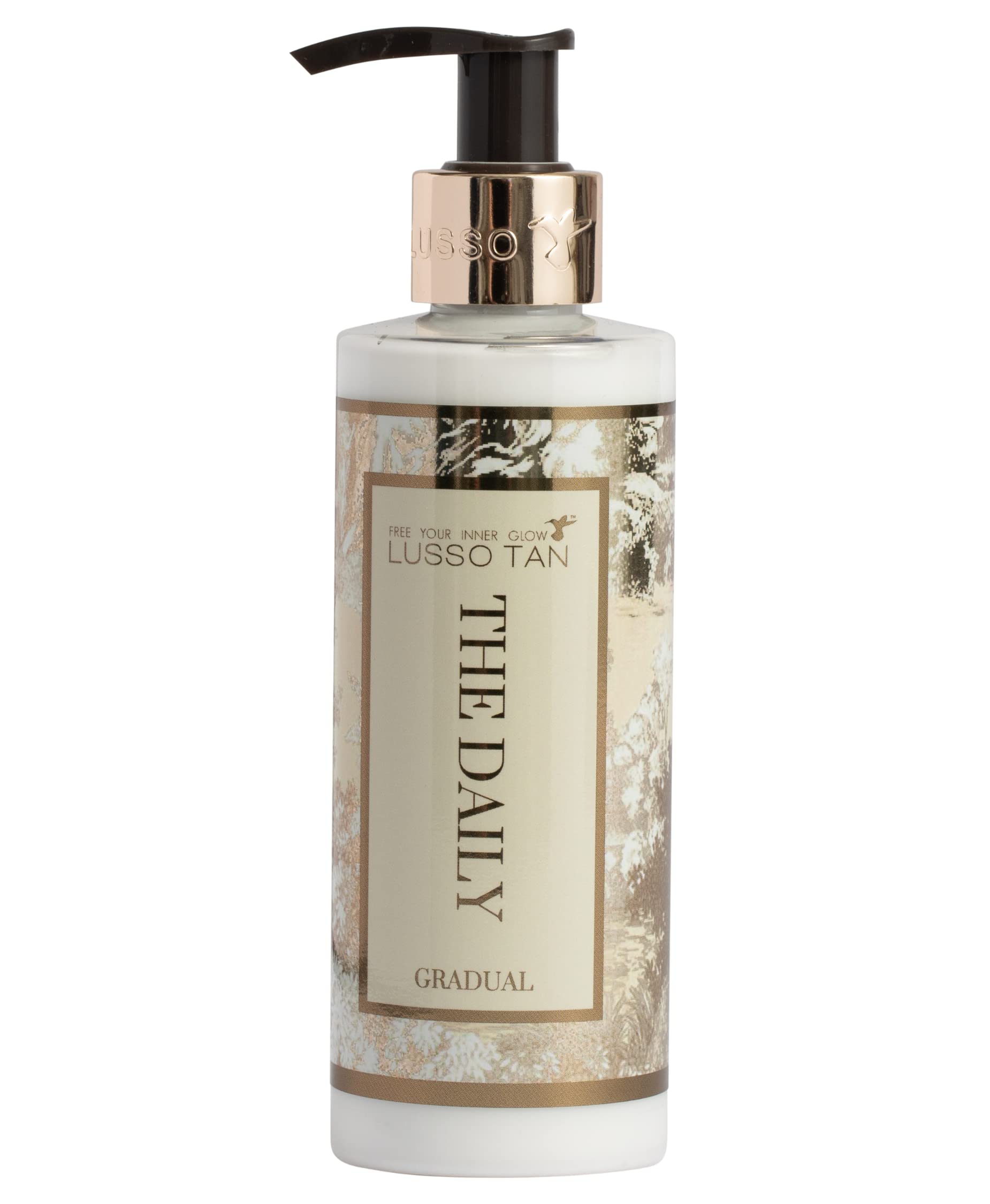Developed with the body’s natural moisturising processes in mind, The Daily is a gradual tanning moisturiser for skin that looks naturally sun-kissed all year round. Infused with nourishing ingredients its lightweight formula is quickly absorbed into the skin to even out tone and enhance radiance allowing you to dress with confidence. This gradual daily tanning moisturiser is easily absorbed to restore moisture balance while offering a sublime glow that fades naturally, just like a suntan. The advanced formulation is guide colour free and no rinsing is required. Enriched with skin-nourishing, natural ingredients like shea butter and aloe vera to help restore skin’s natural elasticity, protect against everyday stresses and deliver a buildable faux glow with longer lasting wear. It’s the quickest way to create a gorgeous, glowing tan. Say hello to summer in a bottle! Details: Gently builds gradual tan Lightweight & easily absorbed Calms sensitive skin Guide colour free Blends easily & dries in 60 seconds Free from parabens, sulfates and phthalates Vegan, organic & cruelty-free Pregnancy safe How to apply: Prep skin in advance with Lusso Tan Primer. Apply to skin as you would a normal body moisturiser. Pump formula directly into hands & glide onto the skin starting at the ankle & using long, sweeping upwards motions. Rinse hands with hot soapy water & apply to the back of the hands using Lusso Tan Sunless Tanning Brush. Allow 6-8 hours of developing time Use daily for sun-drenched skin all year round. Professional tanning experts Lusso Tan Self-Tan Lotion comes to you from our family-run, Belfast-based tanning business with 20+ years of expertise. We’re three sisters who know a thing or two about tanning and the frustration of streaky, sticky tans that fade in minutes. INGREDIENTS Aqua, Dihydroxyacetone, Helianthus annuus (Organic Sunflower Oil), Glycerol Mono Stearate, Stearic Acid, Glycerin (Vegetable), Propylene glycol, Aloe barbadensis (aloe vera leaf extract), Butyrospermum Parkii (Organic Shea Butter), Theobroma Cacao (Cocoa) Seed Butter Carbomer, Allantoin, Tocopheryl Acetate, Retinyl Palmitate Phenoxyethanol, Sodium benzoate, Benzyl alcohol, Coumarin? KIND TO SKIN AND THE PLANET: There’s more! All Lusso Tan products are vegan friendly and cruelty-free. Containing no parabens, sulfates, phthalates or perfume, Lusso Self-Tan Lotion is packed with carefully-selected, organic ingredients that are both gentle on skin and eco-friendly. The fragrance-free formula is bursting with vitamins to nourish and polish the skin. Suitable for all skin types; dry, sensitive. Perfect for everyday use. ? ANTIOXIDANT-INFUSED, HYDRATING FORMULA: Brimming with natural ingredients, The Daily Gradual Tanner is the ultimate self-care skin treatment that’s safe for sensitive skin and during pregnancy too! Its conditioning formula soothes and hydrates thanks to antioxidant-rich aloe vera extract! Cocoa Seed Butter helps improve the appearance of cellulite and firms the skin while Shea butter increases skin’s elasticity. Give your skin a healthy glow with a touch of radiance. ? STREAK-FREE, FLAWLESS FINISH: Say goodbye to the ‘dirty look’ and tell-tale lines of some tanning lotions. Now you can have a salon-quality, airbrush finish everyday with The Daily Gradual Tanner. By applying Lusso Daily everyday, you will avoid patches including knees and elbows. The guide colour free lotion blends perfectly with no rinsing required. A simple tanning solution for smooth, radiant skin. Enjoy the ultimate sunless tan from professional tanning experts. ? DRIES IN 60 SECONDS: No more hanging around waiting for your tan to dry! Lusso Daily Gradual Tanner is lightweight, fast-absorbing, fast-drying and non-sticky, for an effortless application meaning you can get dressed immediately—bliss! Perfect for busy women on-the-go, and doesn’t rub off on clothes. The ultra-light formulation is super easy to apply, simply glide the self moisturiser over cleansed skin everyday for a gorgeous, summer glow. ? LIGHTWEIGHT, BUILDABLE TANNER: Available in 2 sizes, 200ml and 500ml. Lusso Tan Daily Gradual tanner delivers a buildable faux glow for a longer lasting tan. Infused with nourishing ingredients shea butter and aloe vera, The Daily helps to restore moisture balance and increase your skin’s natural elasticity. Use everyday to lock in hydration and create a strengthening barrier to protect against everyday stresses and give skin a sunkissed, golden glow all year round.