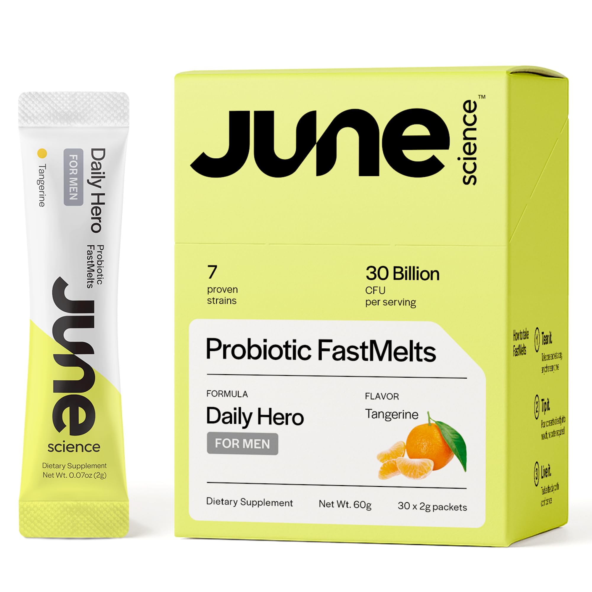 Made in the USA in a cGMP certified facility, third-party tested for safety and purity, and non-GMO. Enhanced with a potent dose of organic prebiotic inulin, Daily Hero helps nourish beneficial bacteria in the gut, promoting better digestion, improved immunity, and mental wellness. Prebiotics ensure your gut thrives, and so do you!. Fast-melt technology ensures a quick, water-free solution, with a refreshing tangerine flavor that dissolves instantly in your mouth. No need for water—just pour, and go!. Specially formulated for men, Daily Hero includes probiotics that target not only gut health but also immune support, mood balance, and even prostate health. This blend helps you perform at your best every day. Promote gut health and improve nutrient absorption with 30 billion CFUs from 7 clinically-researched probiotic strains. These strains support healthy digestion and foster a balanced microbiome, giving you more energy and vitality.