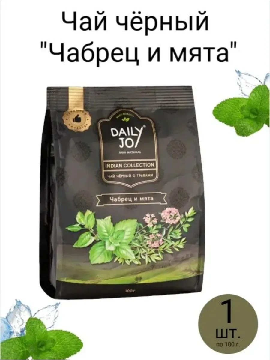 | Полное наименование товара | Чай чёрный "Чабрец и мята", Daily Joy, 100 г сочетает насыщенный вкус индийского байхового чая |