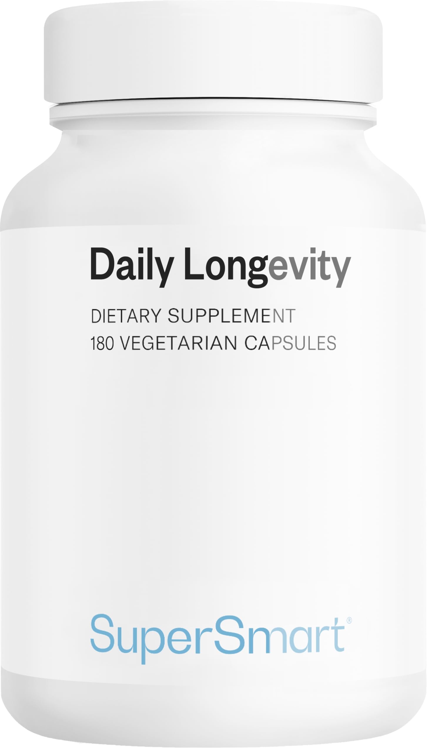 Daily Longevity - Complément Alimentaire Anti-Âge Tout-En-Un - Énergie et Longévité Cellulaire - PQQ, CoQ10, NAC, Quercétine, Fisétine, Trans-Resvératrol - 180 Gélules Véganes - SuperSmart