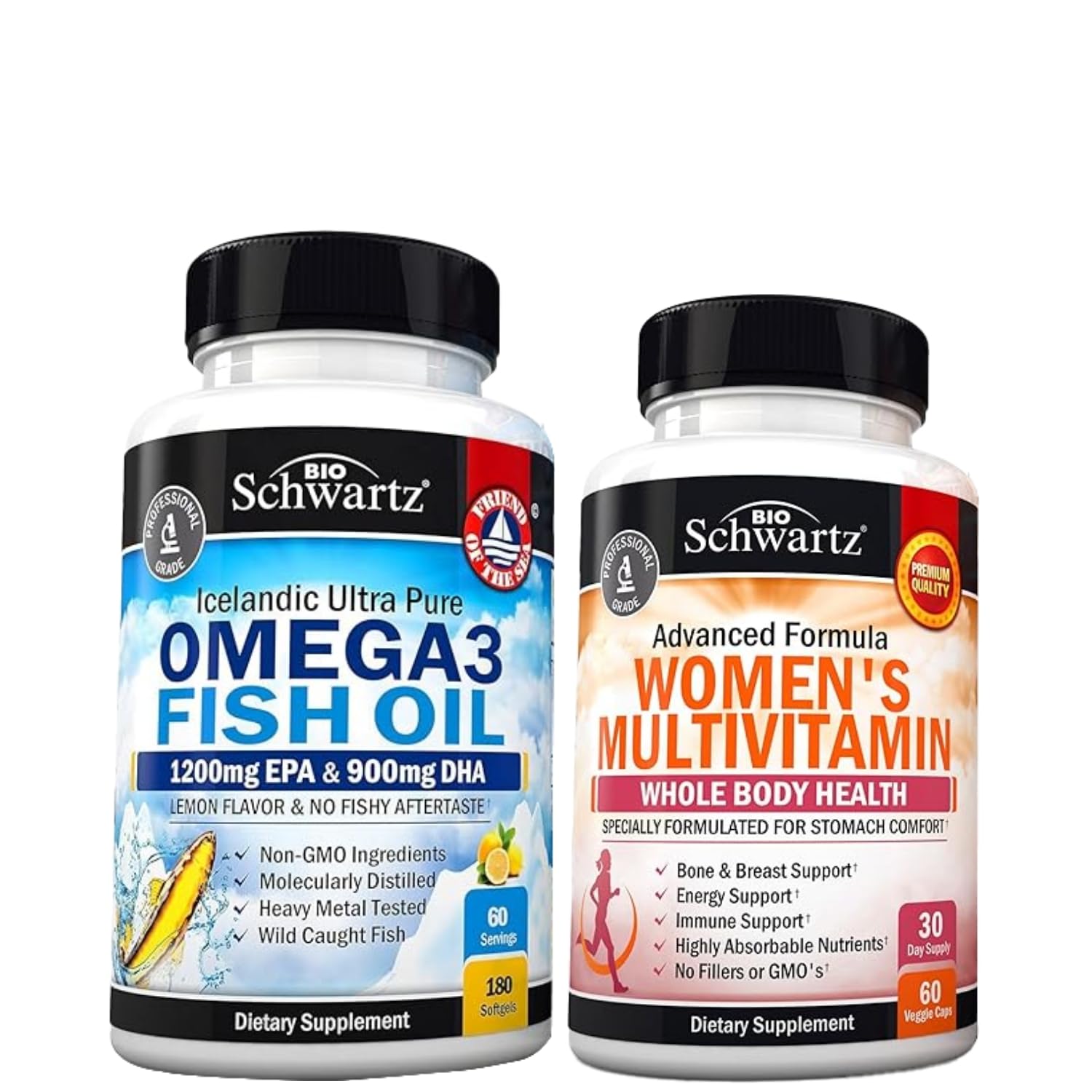 To ensure our products are effective and superior in quality, every bottle every bottle is manufactured in the USA with globally sourced ingredients. BioSchwartz creates superior dietary supplements through the perfect balance of science backed research and the purest nutrients nature has to offer. For even bigger savings don't forget to Subscribe and Save to your favorite BioSchwartz supplements and look out for our regular deals. Each daily serving includes 1200mg of EPA with 900mg of DHA and 150mg of other Omega3s to support your wellness. BioSchwartz Women's Multivitamin provides a unique blend of essential vitamins and minerals targeted to support the immune system and encourage healthy aging support.