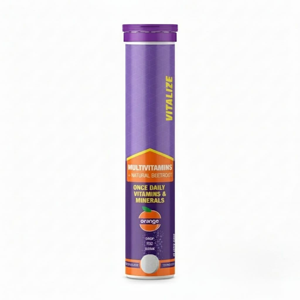 HIGHEST QUALITY MULTIVITAMIN: No Added Sugar Gluten Free No Artificial Flavours HOW TO USE: Drop, Fizz, Drink. Drop 1 tablet in 250 ml of water. Wait till the tablet to dissolves completely and drink. FAST ACTING GREAT TASTING: Formulated with our Swiss technology for rapid absorption without any gastric discomfort, available in a delightful, tasty orange flavor. ENHANCES ALL-DAY ENERGY: Elevate your daily stamina energy two times faster with each dose that is made with vitamins, minerals and added beetroot extract that helps bridge daily. nutritional gaps and keeps you energetic throughout the day. SCIENTIFIC FORMULATION : This Multivitamin has a powerful blend of 21 perfectly balanced vitamins and minerals that enhance your lifestyle by upgrading your energy and daily immunity. Multivitamin for men and women – that gives you a delightful taste of orange while consuming your daily multivitamins.