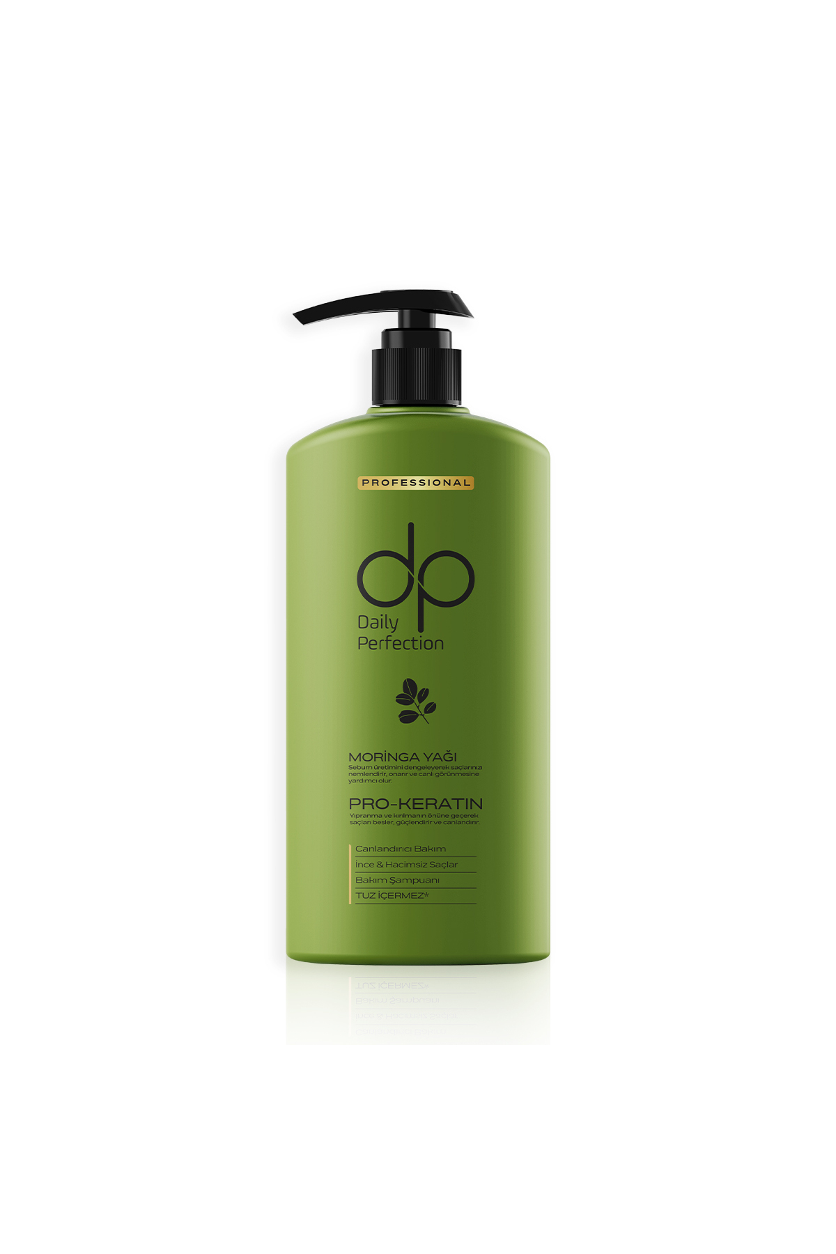 dp Daily Perfection Moringa Yagi 425 ml sampuani, tuz içermeyen ve PRO-KERATIN özel formülüyle saç derisini ve saçi yipratmadan temizler.
