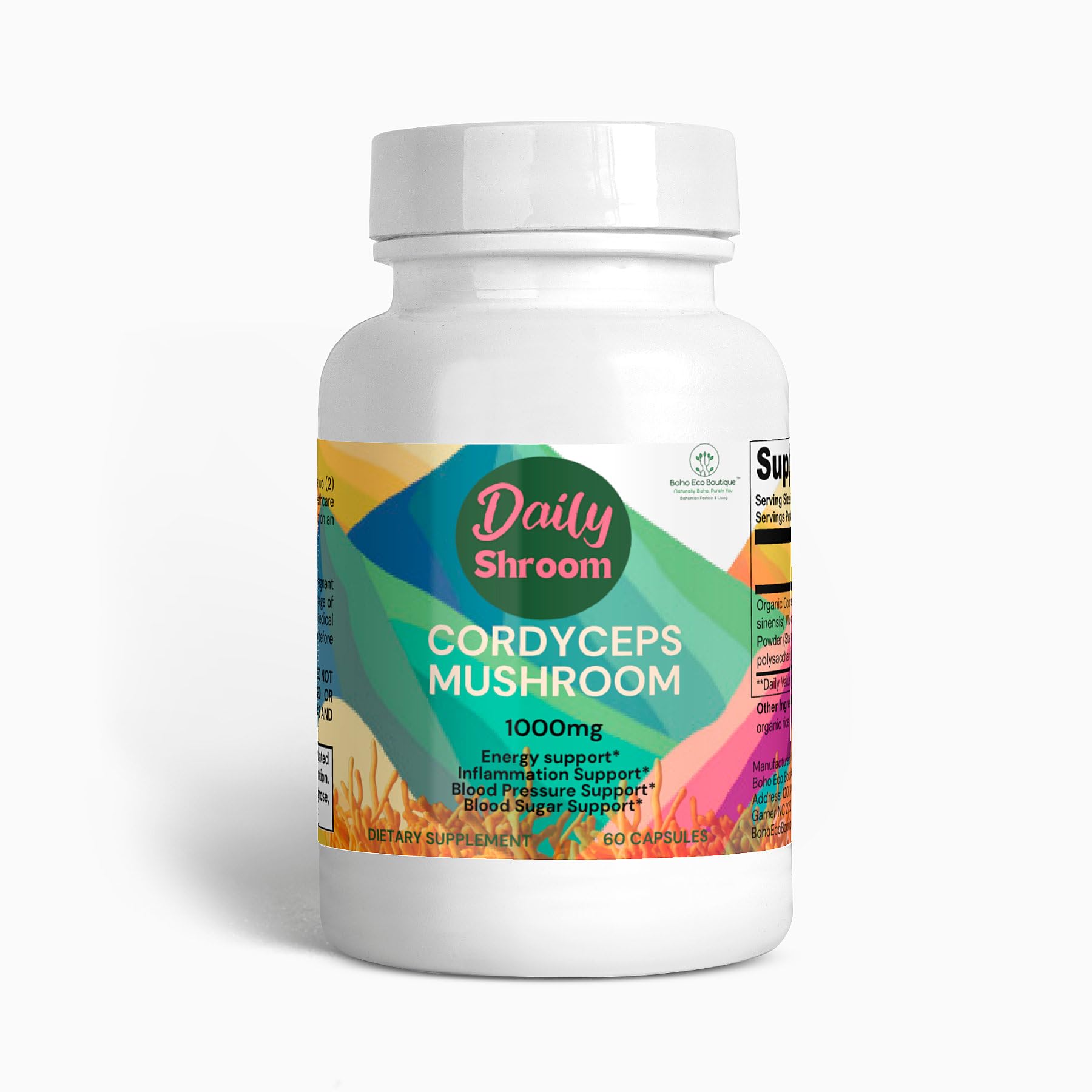 Daily Shroom by Boho Eco Boutique | Premium Cordyceps Mushroom Capsules |Natural Energy Stamina & Immune Support Vegan Non-GMO Adaptogenic Supplement for Performance & Endurance 60 Count