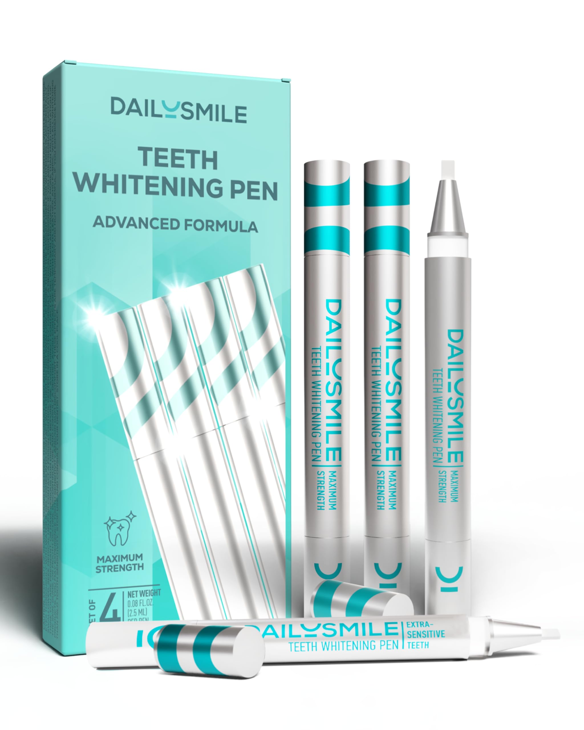 DailySmile Advanced Formula Teeth Whitening Pen is your ultimate tool for achieving a radiant white smile. Our advanced teeth whitening pen is specially designed with ShineBright Advanced teeth whitener formula to erase years of stubborn stains caused by coffee, wine, smoking, and more. With up to 12 shades brighter teeth after just 24 treatments, this teeth whitening kit will help you smile with confidence again. Experience teeth whitening for sensitive teeth with DailySmile's GentleWhite Technology. Unlike other methods, our teeth whitening pen offers pain-free and irritation-free whitening, making it perfect for everyone, including those with delicate teeth. See instant results after just one use—up to 3 shades whiter—while enjoying long-lasting whitening effects for up to 90 days. It's the quick, effective solution you've been waiting for. For even faster results, pair the DailySmile Advanced Formula Teeth Whitening Pen with our MaxBright LED teeth whitening light system (sold separately). With 28 waterproof LED lights, you can achieve professional-grade tooth whitening in just 10 minutes, wherever you are. This hands-free setup is ideal for busy lifestyles, offering convenience without compromising results. Crafted in an FDA-registered facility, this teeth whitening kit uses 100 safe, nontoxic, BPA-free, vegan, and cruelty-free ingredients, giving peace of mind to you and your family. Unlike teeth whitening powders or teeth whitening strips, our whitening gel is easy to apply and hassle-free. Simply twist, apply, and let our whitening gel pen work its magic. The small, portable design makes it travel-friendly and perfect for on-the-go use. You can easily fit it in your purse or pocket for touch-ups when needed. Whether replacing whitening strips, teeth whitening trays, or carbamide peroxide whitening gel, this pen is the ideal choice for busy professionals, multitasking parents, or anyone looking for beautifully bright teeth. DailySmile guarantees 100 satisfaction. If for any reason you're not happy with your results, we'll offer you a replacement or refund—no risk, no hesitation. Say goodbye to insecurities and hello to a radiant, confident you. What's in the box: 1 DailySmile Advanced Formula Teeth Whitening Pen containing whitening gel for up to 24 treatments. (Note: MaxBright LED system sold separately.) Product dimensions: Compact and lightweight, measuring 5.3 inches in length and weighing only 0.5 ounces, making it effortless to handle and store. Start your journey to dazzling white teeth today with the DailySmile Advanced Formula Teeth Whitening Pen. It's the teeth whitening solution you've been dreaming of, delivering professional results at home—with no appointments or expensive treatments required.RISK-FREE SATISFACTION GUARANTEE - Your satisfaction is 100 guaranteed. Not happy with the results of our DailySmile teeth whitening kit? We'll replace it or offer a refund. Try it today and experience the confidence of a brighter smile completely risk-free!. IDEAL ALTERNATIVE TO STRIPS TRAYS - Simplify your routine with DailySmile teeth whitening pen. Unlike messy teeth whitening strips or bulky trays, this sleek pen delivers precise, mess-free application for effective tooth whitening without the hassle. AT-HOME PROFESSIONAL WHITENING SOLUTION - Skip expensive dentist visits with the DailySmile LED teeth whitening light kit. Achieve teeth whitening gel results comparable to professional treatments in the comfort of your home. A brighter, whiter smile has never been easier. SAFE, FDA-REGISTERED, VEGAN FORMULA - DailySmile teeth whitener is FDA-registered, nontoxic, BPA-free, cruelty-free, and vegan. Produced in a safe, regulated facility, this tooth whitening kit offers peace of mind along with a brilliant smile. QUICK, CONVENIENT 10-MINUTE USE - Brighten your smile in just 10 minutes. Use our DailySmile teeth whitening pen anytime, anywhere for fast, hands-free whitening. Pair with our waterproof LED teeth whitening system (sold separately) for even faster, more dramatic teeth-whitening results. IMMEDIATE, LASTING WHITENING RESULTS - See up to 3 shades whiter teeth after just one use. DailySmile teeth whitening gel ensures professional-grade tooth whitening results that last up to 90 days. Rediscover confidence with whiter, brighter teeth in no time. GENTLE FORMULA FOR SENSITIVE TEETH - Enjoy pain-free tooth whitening with GentleWhite Technology. Designed specifically for sensitive teeth, this teeth whitening gel delivers effective results without causing discomfort, making it the perfect alternative to harsh teeth whitening strips. ADVANCED WHITENING FOR STUBBORN STAINS - Transform your smile with DailySmile teeth whitening pen, powered by ShineBright formula. Erase years of coffee, wine, and smoking stains with this revolutionary teeth whitening kit. Achieve up to 12 shades brighter teeth after 24 quick treatments.