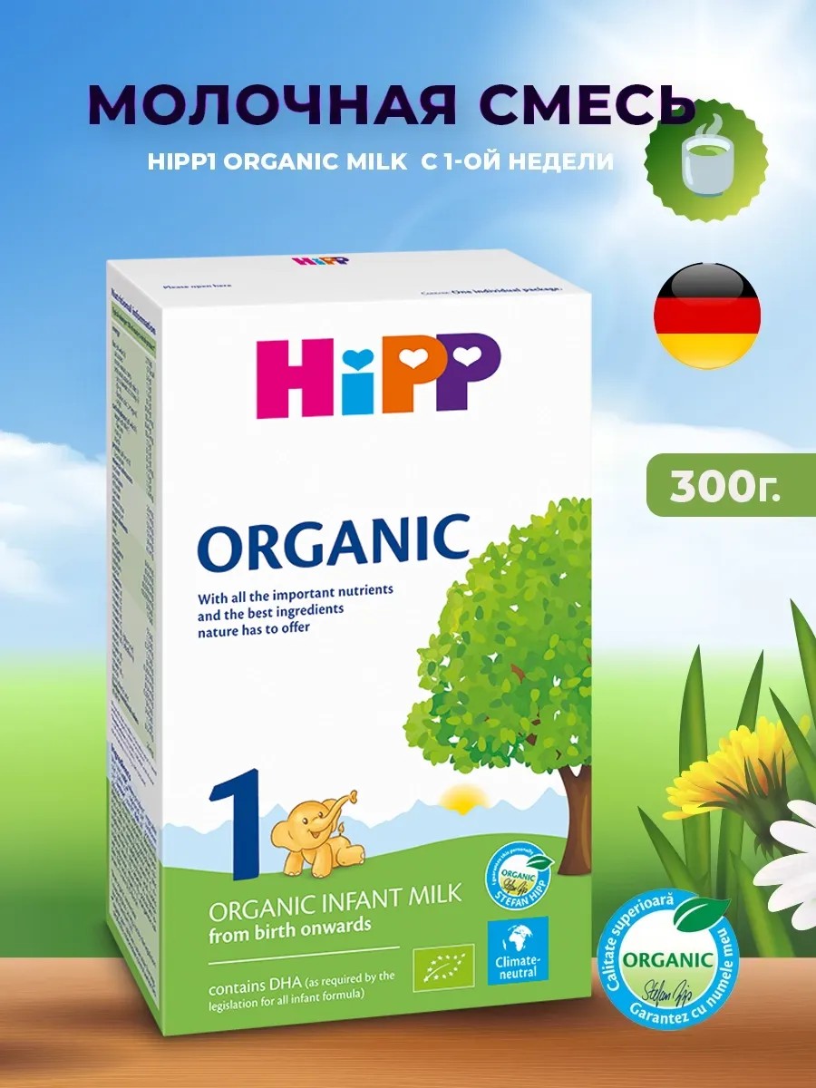 Молочная смесь HiPP 1 Organic Milk объёмом 300 г предназначена для детей с 1-й недели жизни.