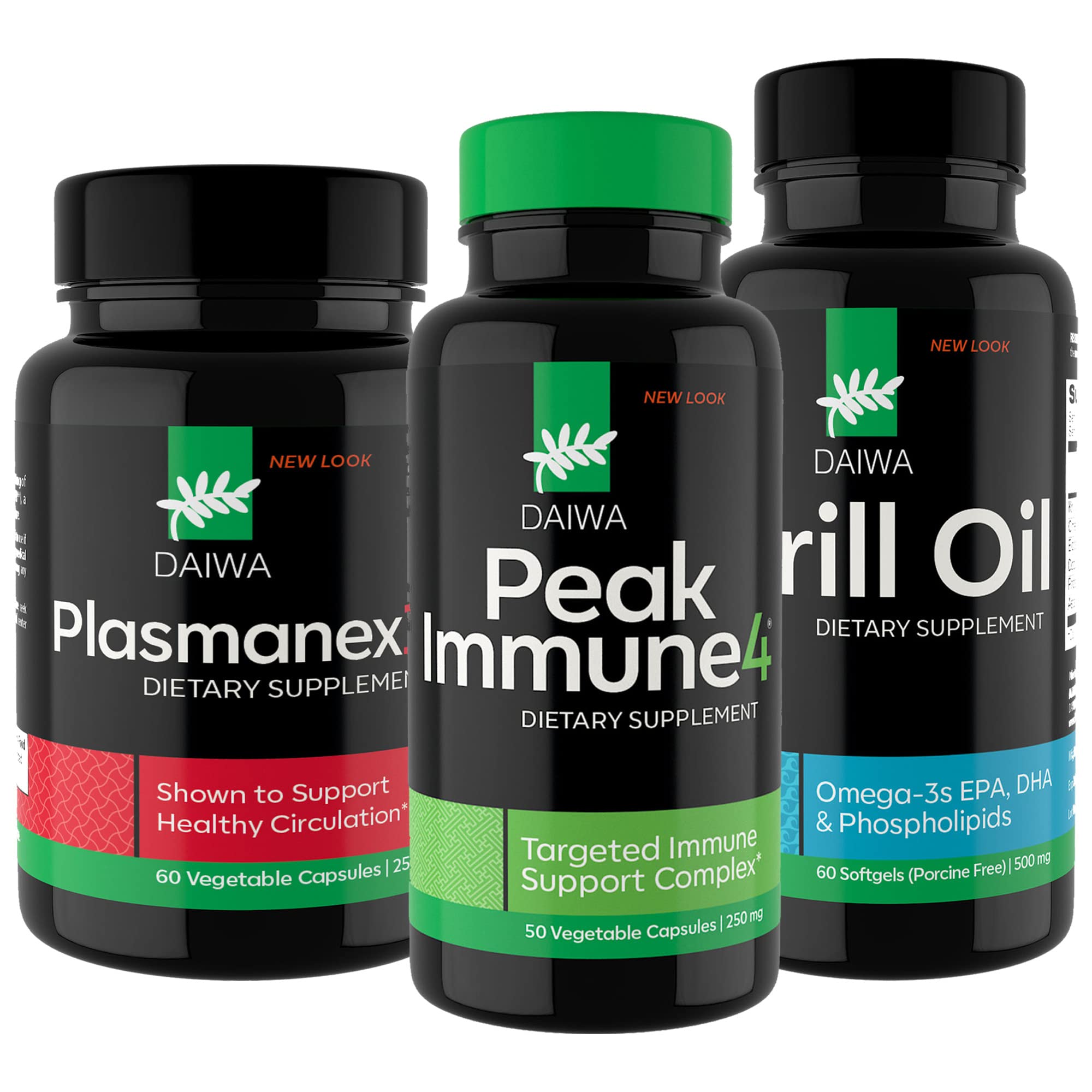 Daiwa Peak Immune 4 - Natural Immune System Booster Daiwa Plasmanex 1 – Blood Circulation Supplement Daiwa Krill Oil – Omega 3 Krill Oil Capsules