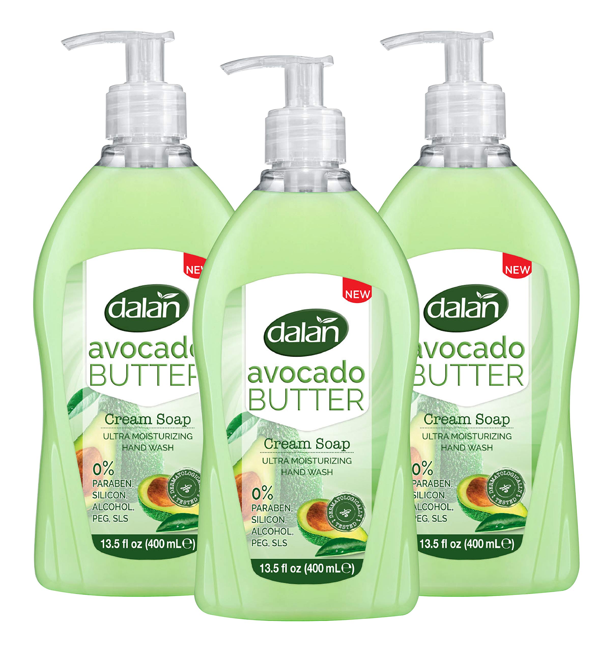 Dalan Avocado Butter Cream Ultra Moisturizing Liquid Hand Soap for Dry and Fresh Hands Feeling Clean and Soft (13.5 Fl Oz / 400 mL (Pack of 3)) 13.5 Fl Oz (Pack of 3)