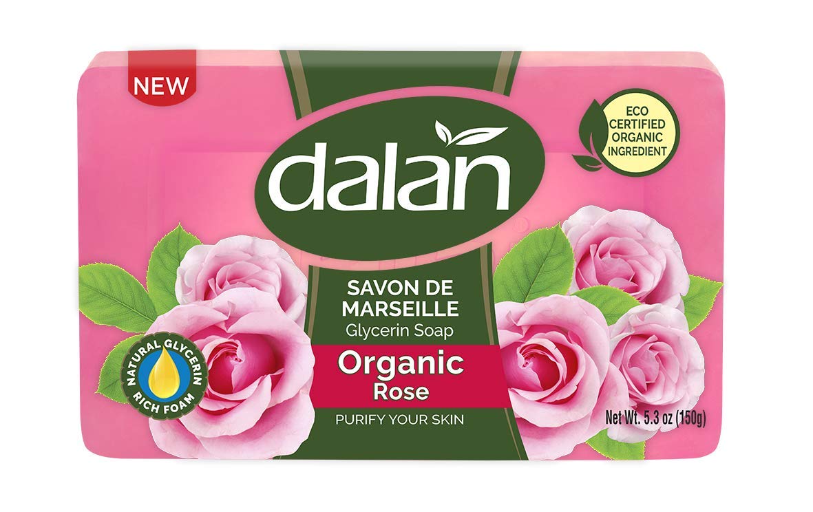 Dalan Glycerin Organic Rose Marseille Soap is specially formulated to purify your skin with its natural extracts of organic rose. The glycerin in the soap nourishes and moisturizes your skin, while the organic rose cleanses, detoxifies, and purifies your skin to its fullest potential, leaving your skin delicately scented with the freshness of beautiful roses. In one of the earliest beauty uses of the flower, the ancient Greeks and Romans used rose petals to perfume their baths. They were highly valued and also decorated the floors of their banquet halls with rose petals. In distilled forms, roses have been included in cosmetics, medicines, and therapeutic treatments for centuries. Rose essential oil has antibacterial, antifungal, and antiviral properties, making it ideal for topically treating a multitude of ailments, including abrasions, burns, and skin problems. It has also been used to relieve sore throats, fever, and coughs.Soothing and anti-inflammatory benefits for the skin. Antibacterial, antifungal, and antiviral properties. Pure organic rose ingredients.Dalan Savon de Marseille la glyc rine BIO, 150 gDESCRIPTION DU PRODUIT Savon Dalan Glycérine Savon de Marseille Bio Rose est spécialement conçu pour purifier votre peau avec ses extraits naturels de rose biologique. La glycérine dans le savon nourrit et hydrate votre peau tandis que la rose bio nettoie, détoxifie et purifie votre peau à son niveau maximal, laissant votre peau entièrement parfumée avec une fraîcheur de jolies roses. ! Dans l'une des premières utilisations de beauté de la fleur, les Grecs anciens et les Romains utilisaient des pétales de rose pour parfumer leurs baignoires. Elles ont été très appréciées et décorent également les sols de leurs salles de banquet avec des pétales de rose. Dans les formes distillées, les roses sont incluses dans les cosmétiques, les médicaments et les traitements thérapeutiques depuis des siècles. L'huile essentielle de rose a des propriétés antibactériennes, antifongiques et antivirales, ce qui la rend idéale pour traiter topiquement une multitude de maladies, y compris les abrasions, les brûlures et les problèmes de peau. Il a également été utilisé pour soulager les maux de gorge, la fièvre et la toux.Bienfaits apaisants et anti-inflammatoires pour la peau. Propriétés antibactériennes, antifongiques et antivirales. Ingrédients de rose bio purs.