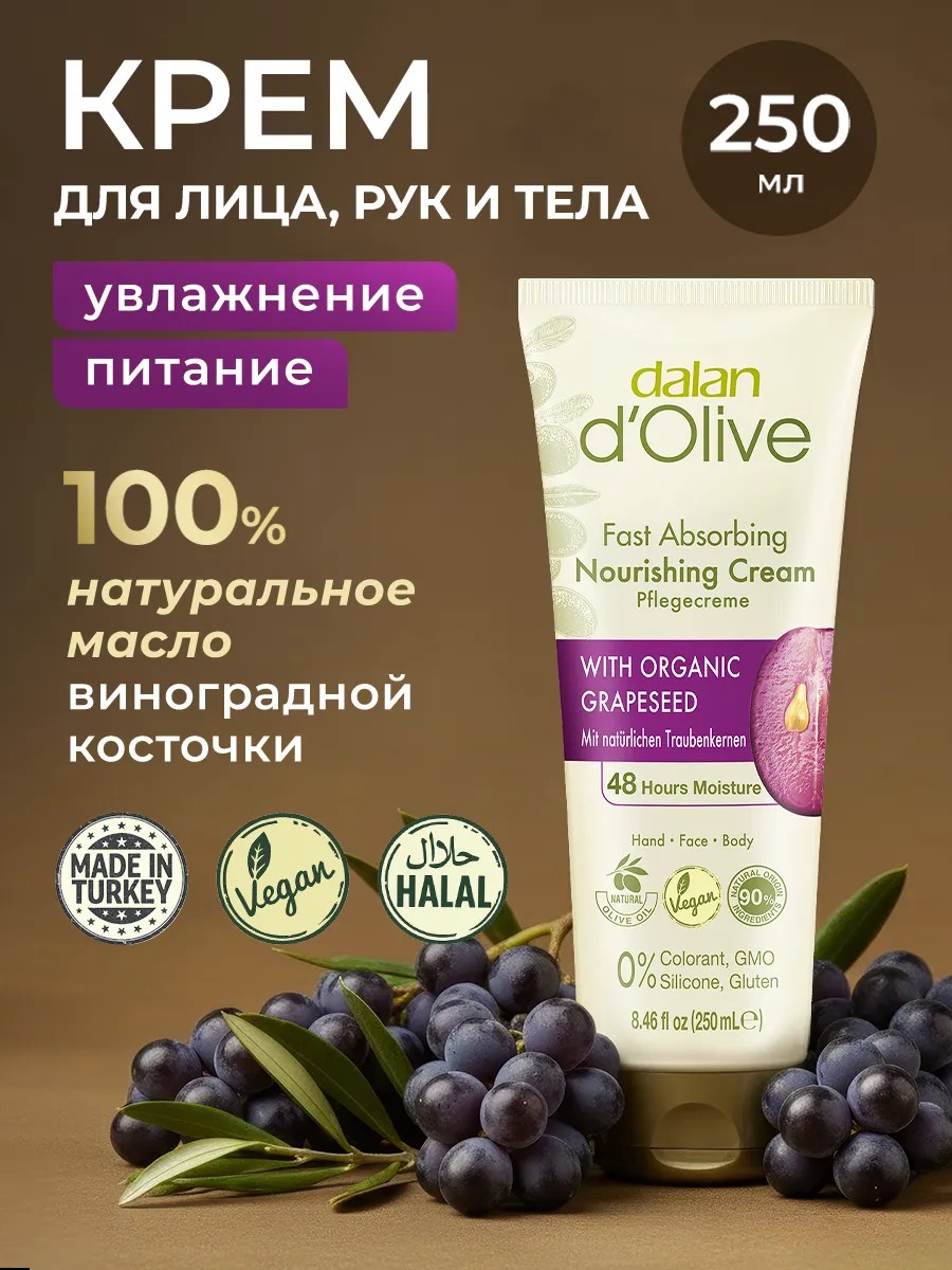 Турецкий крем для рук и тела с маслом виноградных косточек содержит витаминный комплекс, позволяющий восстановить здоровье и внешний вид кожи. Увлажняющий крем для рук, тела и лица может использоваться как для сухой, так и для жирной, а также смешанной кожи. Если вы задумались о том, чтобы приобрести ламеллярный крем, который станет универсальным уходовым средством, используемым в качестве крема для тела, лица, увлажняющего крема для рук, крема для шеи и декольте, подтягивающего крема для тела, крема для локтей, против морщин, от растяжек и трещин, то крем увлажняющий для лица и тела с виноградной косточкой лучше всего подойдет для этой цели. В состав парфюмированного натуральными эфирными маслами крема для тела и рук входит натуральное масло оливы трех видов, а также масло виноградной косточки и глицерин. Если у вас присутствует сухость, раздражения, покраснения, то вы можете использовать крем для рук и тела с виноградной косточкой для лечения проблемной кожи. Масло виноградной косточки обладает мощным заживляющим и выравнивающим эффектом. Если вы будете применять крем увлажняющий и питательный для всех членов семьи, то вам имеет смысл приобретать набор из нескольких упаковок. Универсальный крем для рук маленький подойдет для ношения в женской сумочке. Вы можете его использовать как крем для лица дневной для проблемной кожи, крем подтягивающий для тела, так и в качестве крема на вечер перед сном и в качестве крема для локтей. Если вы привыкли к крему для лица с мочевиной, то крем с виноградной косточкой оказывает не меньший увлажняющий эффект. Экстракт виноградных косточек помогает уменьшить признаки повреждения кожи и стабилизирует УФ-фильтры, обеспечивая лучший SPF в формулах солнцезащитных средств. Крем для рук мини можно использовать в качестве пробника, если вы приобретаете его впервые. В магазине Turkish Cosmetics вы можете приобрести Крем для тела с маслом виноградной косточки прямо .