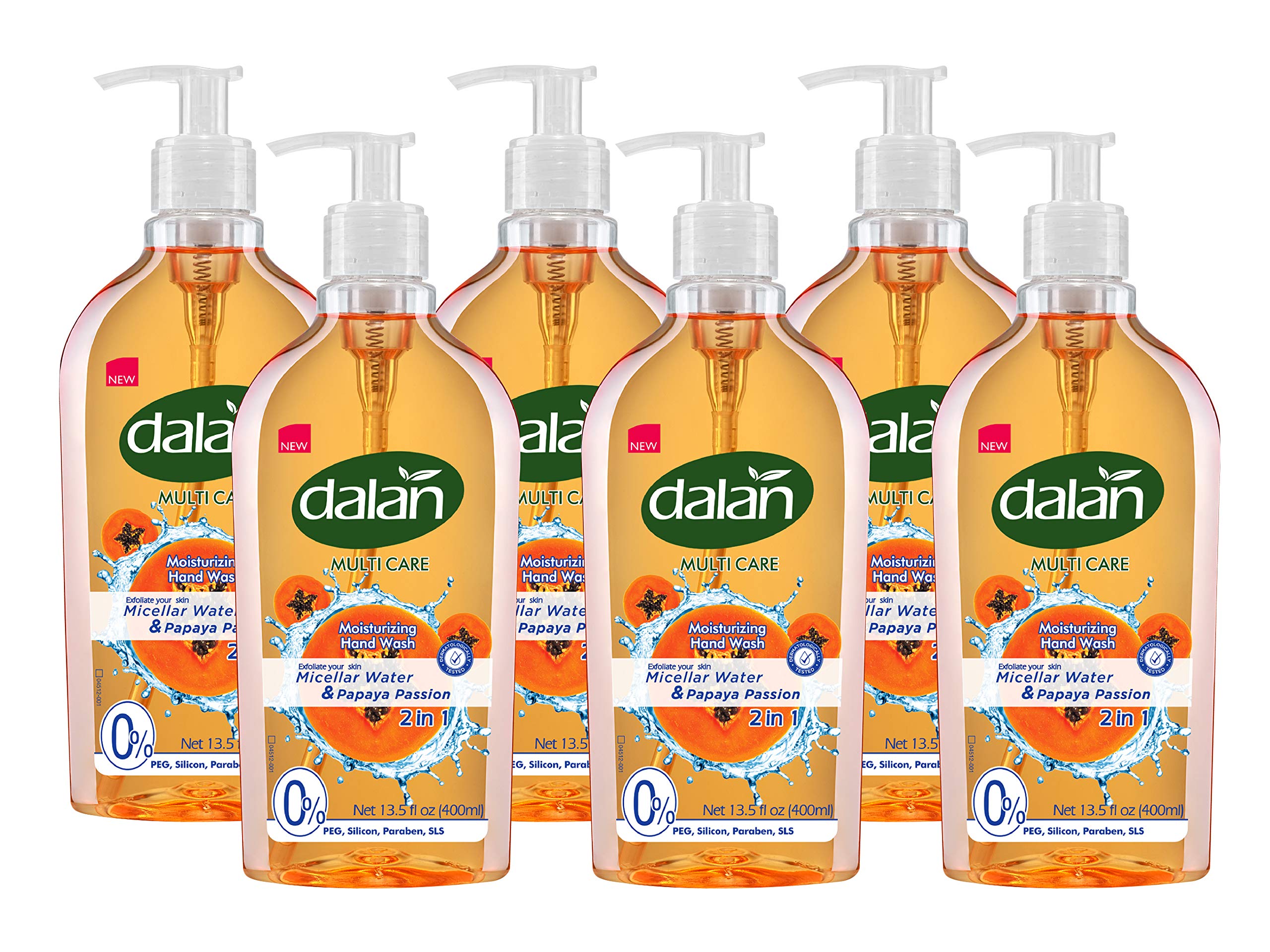 Dalan Papaya Passion Multicare Ultra Moisturizing Liquid Hand Soap for Normal and Dry Hands Fresh Clean and Soft Feeling (13.5 Fl Oz / 400 mL (Pack of 6)) 13.5 Fl Oz (Pack of 6)