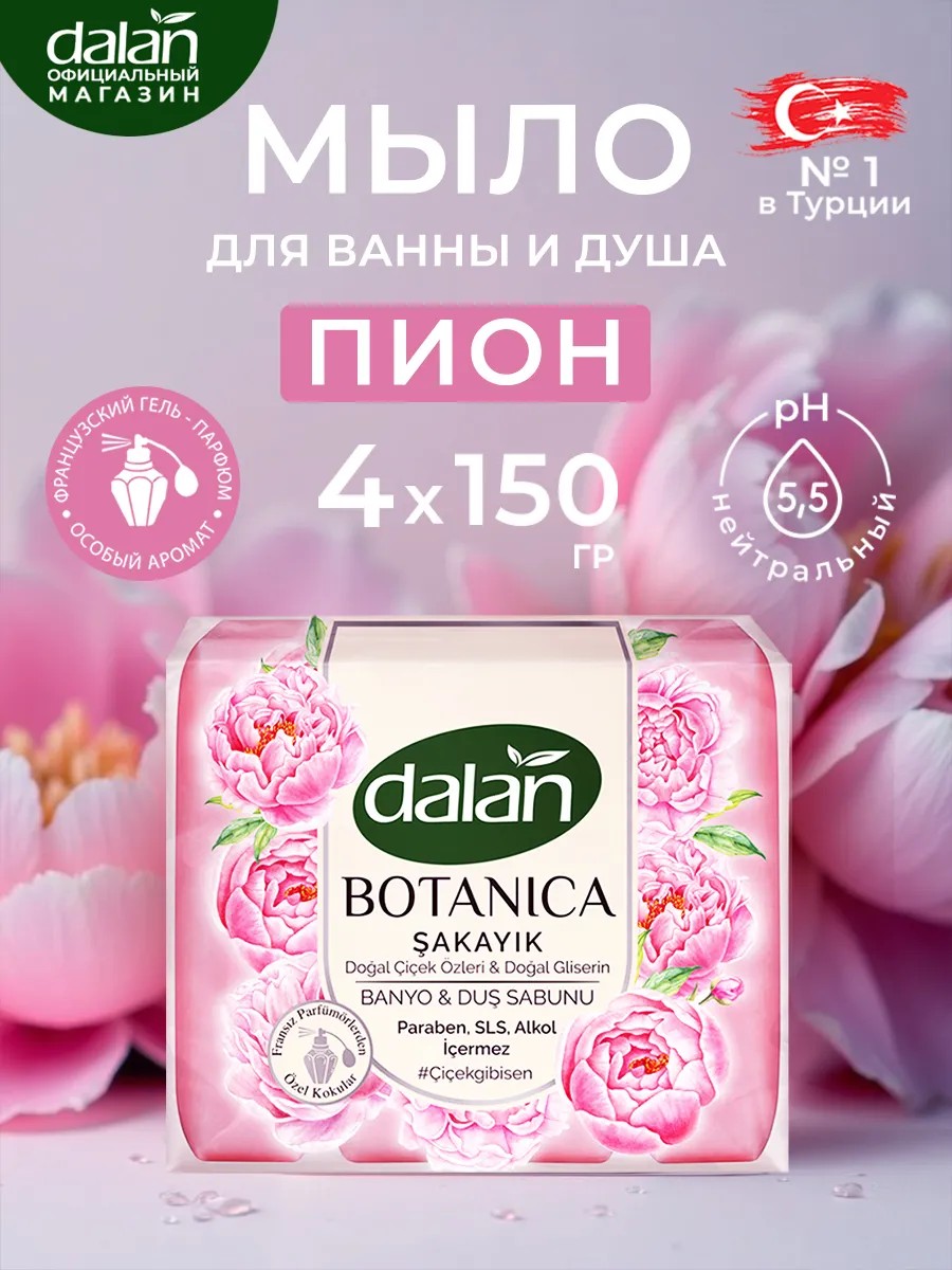 DALAN Парфюмированное мыло для рук и тела Пион Botanica кусковое