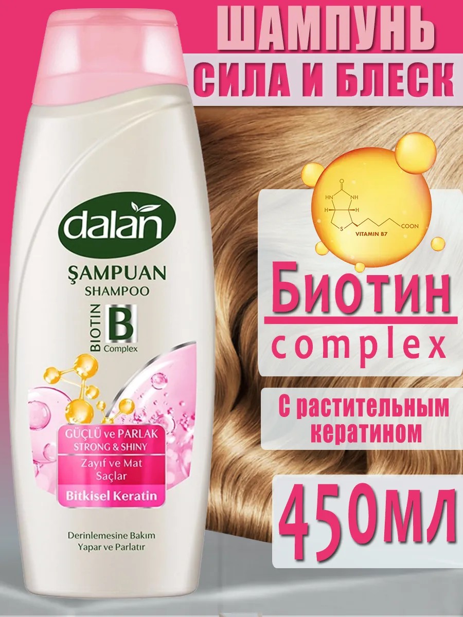 Шампунь Dalan Strong and Shine 450 мл специально разработан для слабых и тусклых волос. Комплекс биотина B и растительный кератин глубоко питают, укрепляют и придают естественный блеск. Упаковка на 100% пригодна для вторичной переработки и экологична.