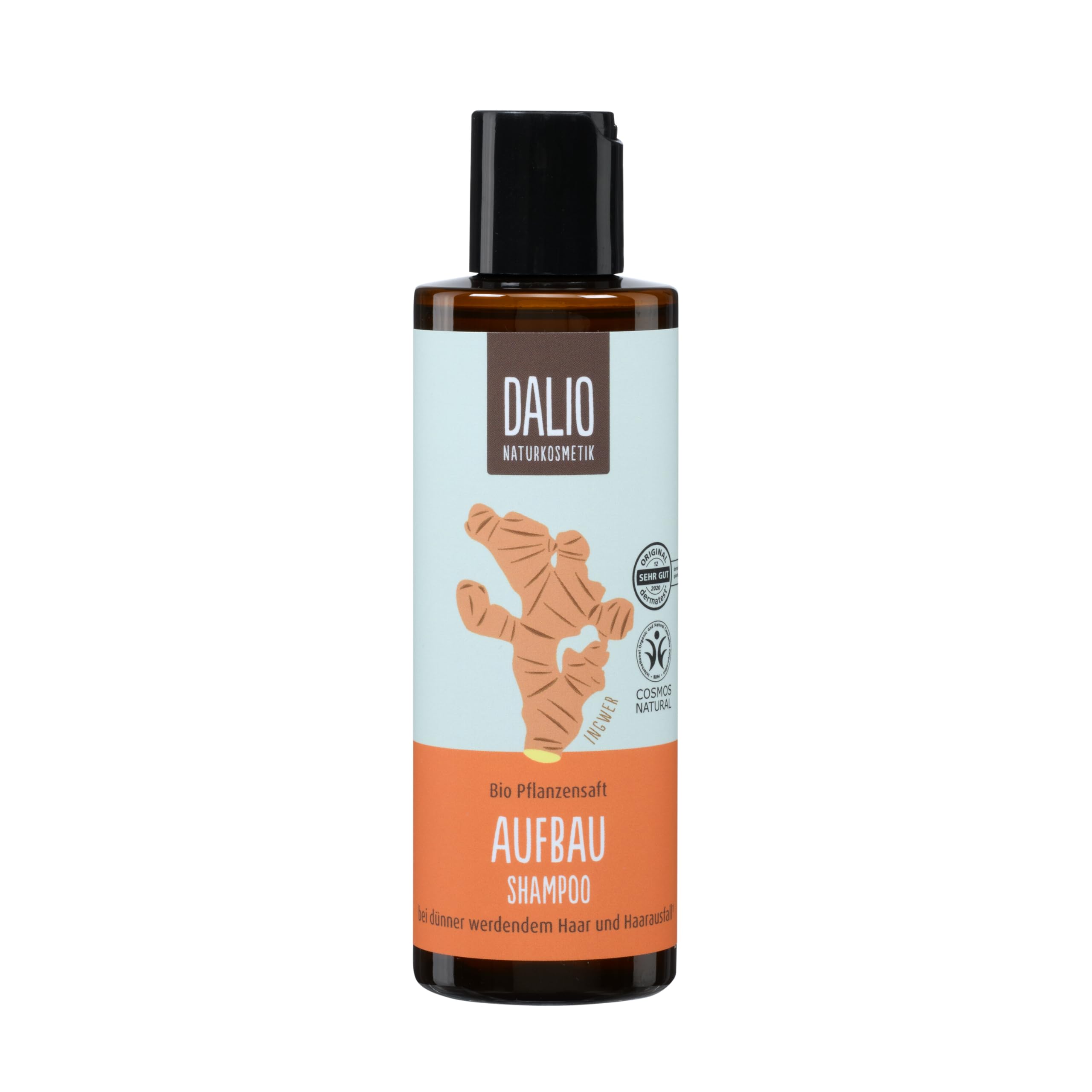 DALIO Shampooing reconstituant – Nettoyage doux pour cheveux clairsemés, stimule la pousse des cheveux, avec gingembre bio, caféine bio et protéines de riz, cosmétique naturel certifié végétalien 200