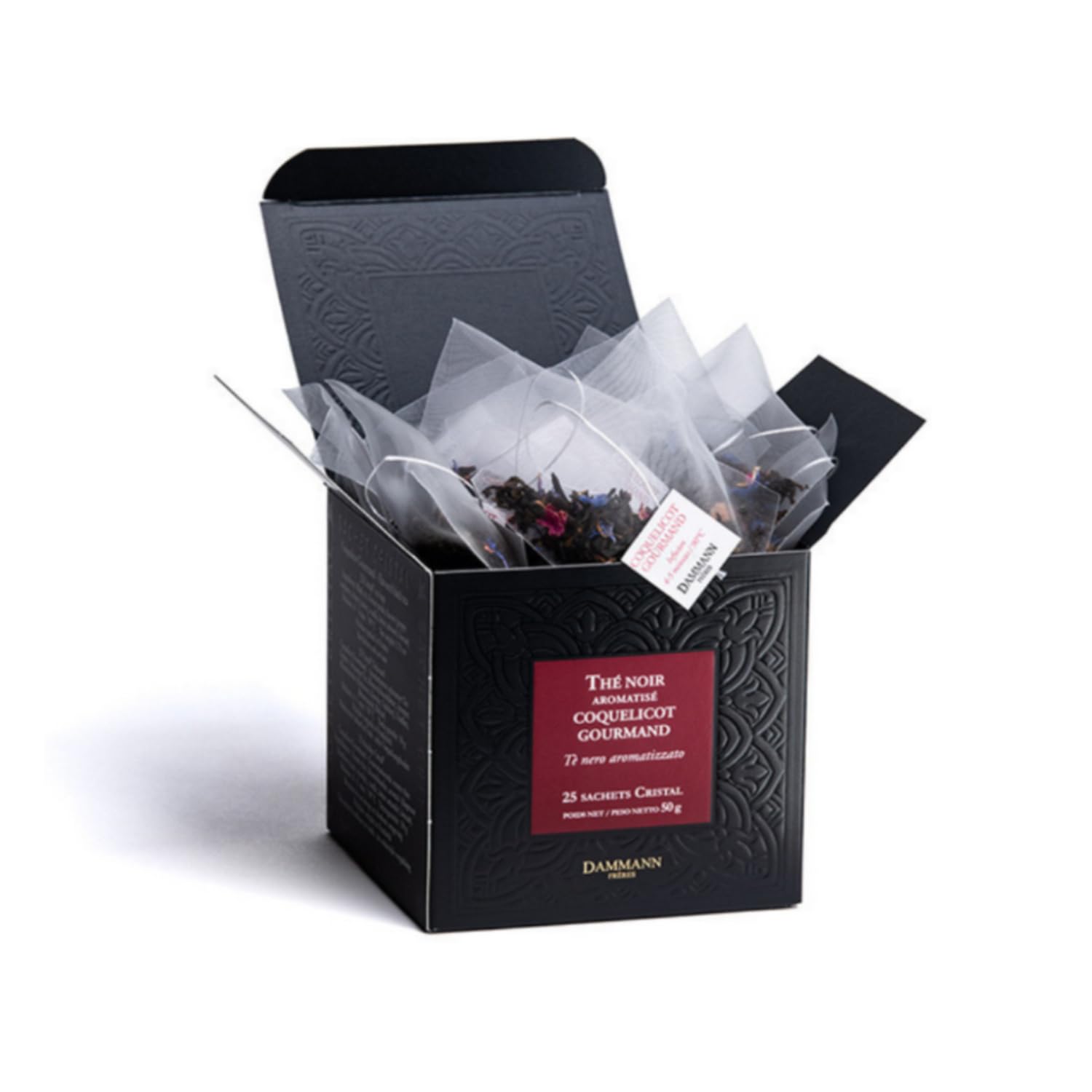 Dammann Frères Thé Noir Gourmand Coquelicot Thé Noir Framboise Cerise et Biscuit - 25 Filtres (50 Gr) Mélange d'arômes de thé noir, de fleurs et de fruits
