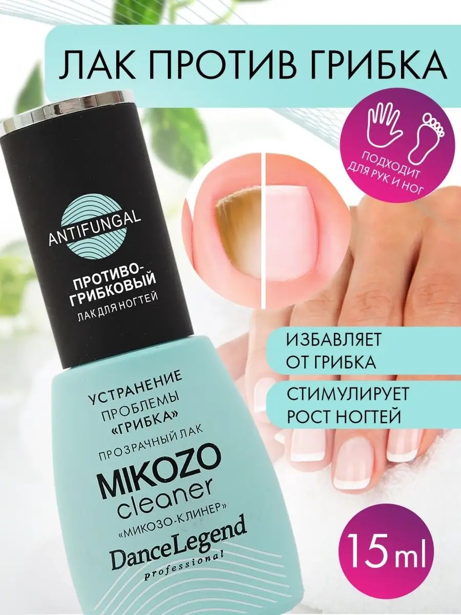 Прозрачный лак для ногтей Dance Legend Mikozo Cleaner надежно и эффективно устраняет проблему грибковых поражений ногтей (онихомикозов) различного характера. Основным действующим веществом в составе этого средства является тербинафина гидрохлорид – компонент, который глубоко проникает в структуру поврежденного ногтя и оказывает интенсивное антибактериальное и фунгицидное действие. При регулярном нанесении Mikozo Cleaner блокирует развитие грибковой инфекции, предотвращает её дальнейшее распространение и защищает от повторного появления, помогая ногтям расти крепкими и здоровыми.Нанесите тонкий слой лака на сухую, чистую поверхность ногтей после гигиенического или медицинского маникюра или педикюра и дайте высохнуть. Регулярно повторяйте нанесение до достижения желаемого результата.
