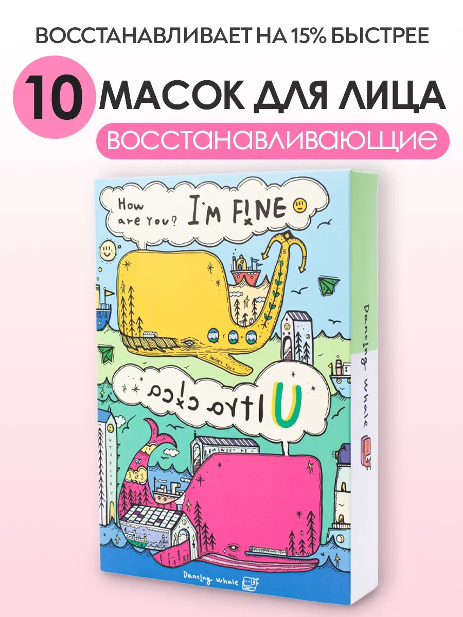 Dancing Whale Набор тканевых масок для лица Корея востанавлиающих , 10 шт