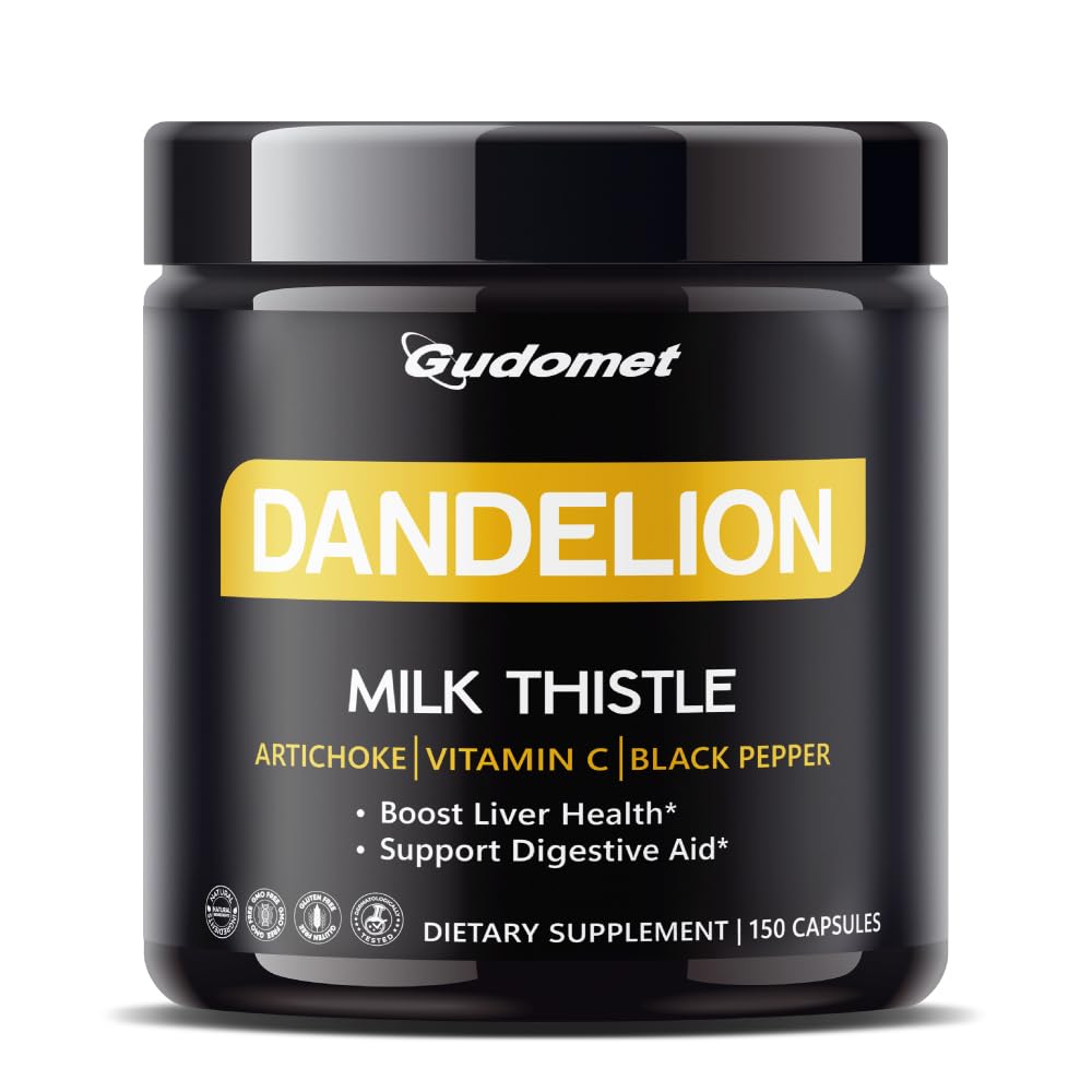 Your Wellness Comes First: Gudomet Supplements are rigorously tested in ISO 17025 certified labs for superior quality, purity, and potency. Reliable Ingredients: Gudomet meticulously sources each ingredient from trusted suppliers, ensuring they are entirely natural, non-GMO, and free from gluten, sugar, and chemicals. Digestive and Liver Health Support: Our Dandelion formula is rich in vitamins and nutrients that work together to support digestive health, promote a healthy gut environment, aid in detoxification, and enhance liver function. Powerful s: The Gudomet formula features concentrated s of Dandelion, Milk Thistle, Artichoke, and Burdock, with Black Pepper included to boost absorption. Ultra-Strength Supplements: Each bottle of Gudomet Dandelion contains 150 capsules, offering a 5-month supply. Enjoy the full wellness benefits by taking just one capsule daily.