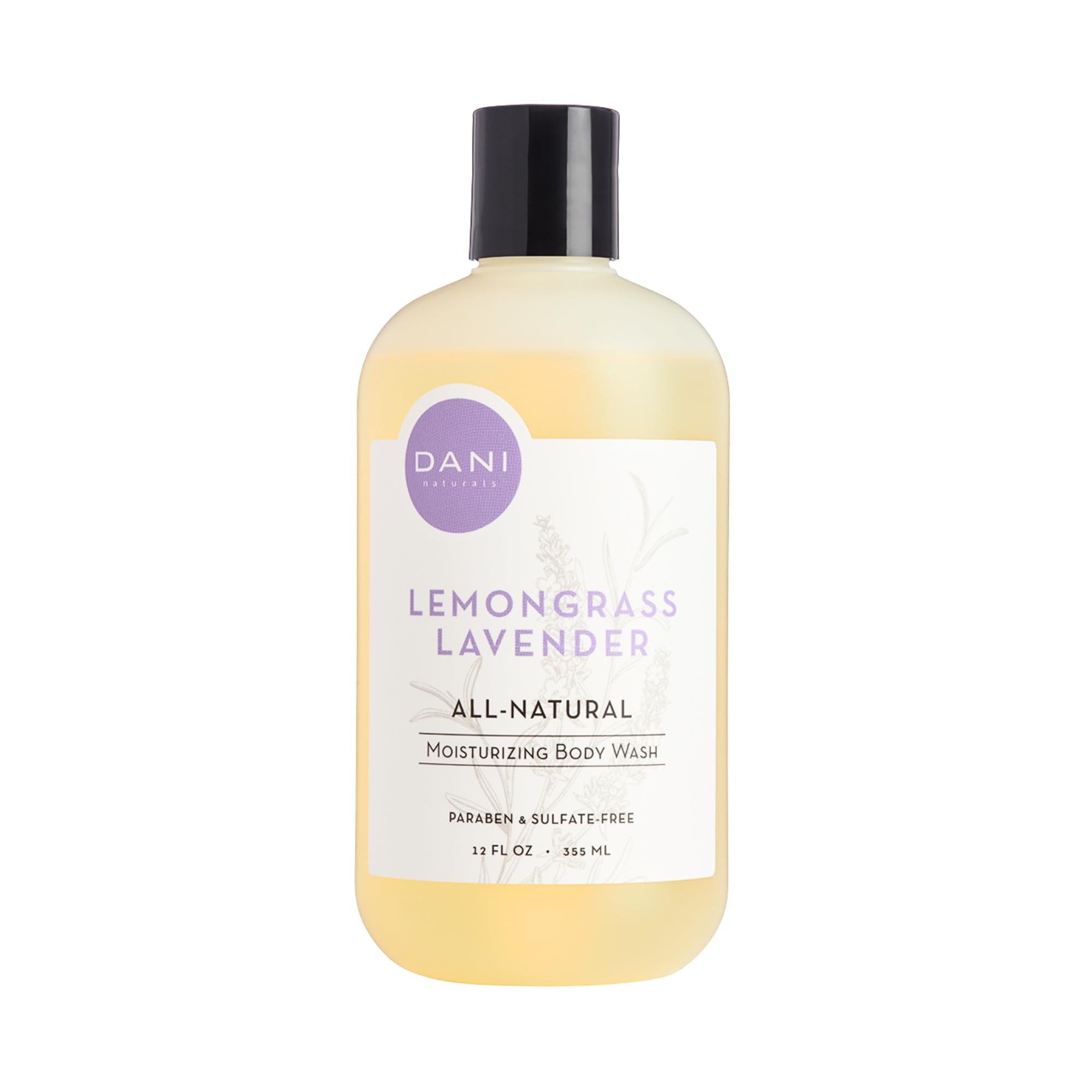 DANI Naturals Moisturizing Body Wash - Calming Lemongrass Lavender Scent with Organic Aloe Vera & Natural Glycerin - Paraben Sulfate & Phthalate-Free Shower Gel - 12 oz Bottle Vegan & Cruelty-Free