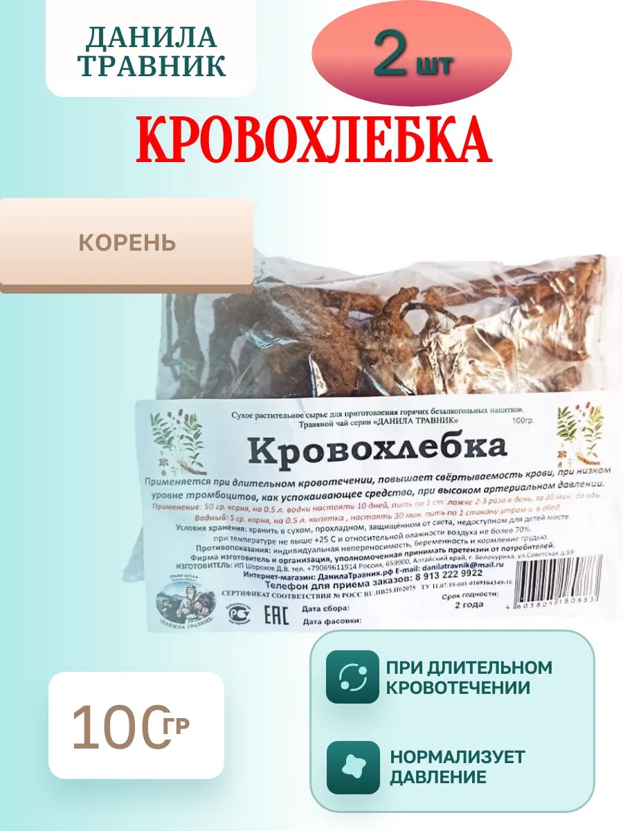 Данила Травник Кровохлебка лекарственная корень 2 упаковки по 100г