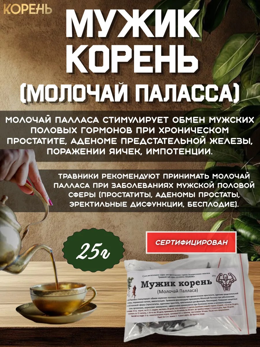 | Состав травяного сбора | Мужик корень молочай Паласса |